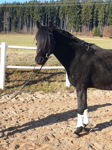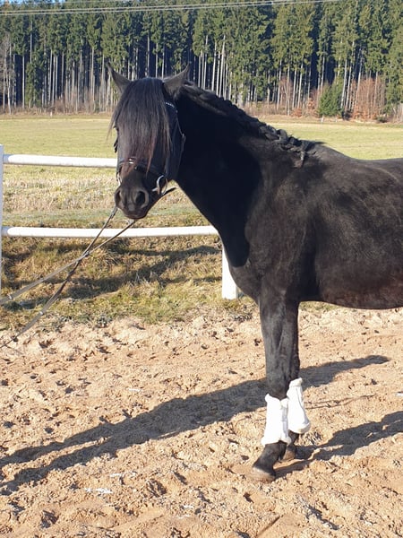 Berittplatz steht ab März Bis dahin zum Sonderpreis Unser 3-jähriger sensibler Rappwallach mit top Bewegung sucht sein perfektes Zuhause. Zum Verkauf steht ein 3-jähriges Deutsches Reitpony (Rappe) mit hervorragendem Bewegungsablauf und tollen Charakter. Er wurde bei uns in der Hengstherde aufgezogen und ist absolut unkompliziert im Umgang. Immer Aufmerksam, freundlich und klar im Kopf. Aktuell wird er von einen 13-jährigen Mädchen betreut und zeigt sich stets brav und freundlich. In jeder Situation händelbar. ✔️ Ausbildungsstand Kennt Reitergewicht Schritt reiten an der Longe Von Kindern problemlos im Alltag zu händeln Geht über Brücke und Plane Wird bei längerem Verbleib spätestens im Februar/März in Profiberitt gehen, danach steigt der Preis je nach Ausbildungsstand. ✔️ Gesundheit Aktuelle Röntgenbilder inkl. Rücken – ohne Befund ✔️ Umgang & Haltung Schmiede- und verladefromm Kennt Traktor und den normalen Stallbetrieb inkl vielen Kindern. Kein „Schlaftabletten-Pony“ – er bringt Power mit und braucht daher erfahrene Hände. Bzw einen erfahrenen Ausbilder er ist noch kein reines Kinderpony mit dem man losreiten kann. Aber immer absolut klar im Knopf und händelbar. Bleibt immer beim Menschen. ✔️ Videos Aufgrund der aktuellen Platzverhältnisse (Wasser/Glätte) keine aktuellen Videos Sommer-Videos vorhanden und können gerne zugeschickt werden ✔️ Preis 10000 Euro Preis ist fair und vor Ort verhandelbar – im realistischen Rahmen. (Unrealistische Angebote wie „2.000 € weniger“ sind zwecklos.) Kein Notverkauf! Pony und neuer Besitzer sollten zusammen passen. Kontakt gerne WhatsApp Anfragen bitte telefonisch an: +49 151 28136566