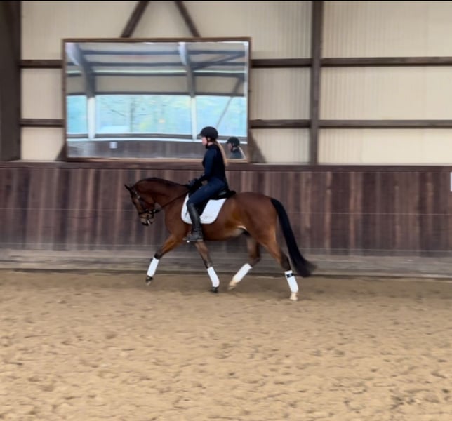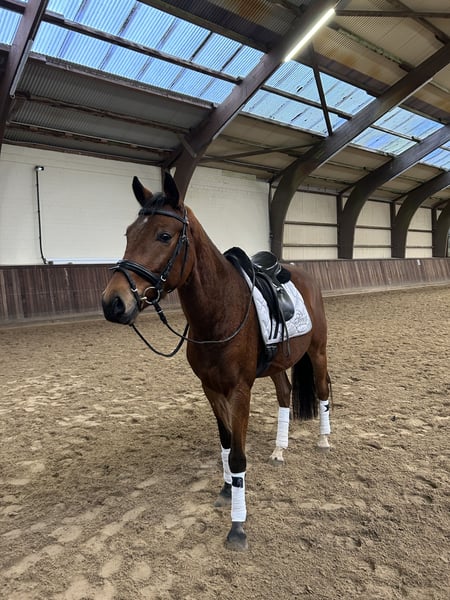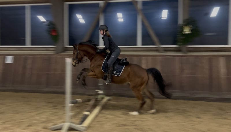 "Krümel" wurde im Oktober 2025 angeritten und ist seitdem sehr lieb und lernwillig. Seine Einstellung bringt uns jeden Tag wieder zum Staunen. In der Dressur befindet er sich auf Dressurpferde A Niveau, sodass man direkt auf Turnieren durch starten kann. Mit dem Springen haben wir auch begonnen. Dabei hat er besonders viel Spaß. Er springt schon mit sehr viel Übersicht. Ich kann ihn mir sehr gut als Hunterpony vorstellen. Da ich aufgrund meines Studium nicht mehr soviel Zeit für ihn habe, suche ich jemanden, bei dem er die Nummer 1 ist. Ein TÜV ist bereits vorhanden.