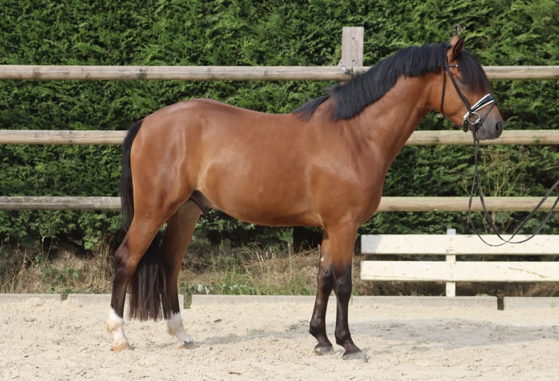 Steverheides Nikita is a 3-year-old gelding with a sporty appearance in stallion type and a desirable XL size of approximately 1.53 m. This makes him an ideal candidate for small adults or ambitious teenagers looking for a performance-ready and eye-catching partner for dressage. With three very good basic gaits, a correct and strong build, and a clear outline, Nikita impresses both in movement and in conformation. His pedigree leaves nothing to be desired: FS Numero Uno x Dein Sunnyboy x Werwolf x Nibelungenheld I – a genetic foundation designed for sporting success. Two of his brothers have already been successful up to the FEI level as well as in class M. The maternal line is also proven in performance: His half-sister passed an excellent mare performance test, was awarded the state premium mare title, and was the 1st reserve champion of the jumping-focused riding ponies in 2023 in Westfalen. A solid, strong lineage with proven performance. In daily handling, Nikita is sensitive and somewhat reserved. He needs some time to build trust but then interacts attentively, eagerly, and cooperatively with familiar people. He reliably masters new tasks with a clear mind – a young gelding with a lot of potential for riders who appreciate and wish to develop his fine character. Current X-ray images (18 shots including the back) from 01/2025 are available and can be viewed upon serious interest. Nikita is offered as part of my master project – I place great importance on honest advice and personal contact. I am happy to take the time for a detailed conversation and an individual presentation on-site. If you are seriously interested, I look forward to your message or call.