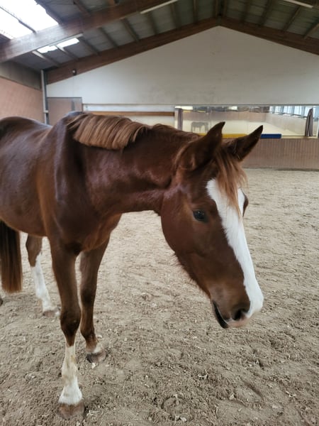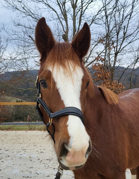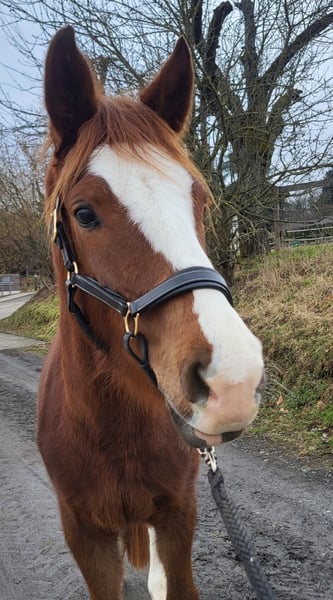 Zum Verkauf steht dieser am 02.05.2022 geborene XXL Reitponywallach (ca.1,58m). Nadal kann man mit einem Wort beschreiben: Traumpony! Denn er bringt alles mit, was ein zukünftiger Sport- und Freizeitpartner mitbringen sollte. Der Wallach verfügt über 3 sehr gute Grundgangarten, besonders der Schritt und Galopp sind hervorzuheben und genügend Go für den Dressursport. Sein Charakter ist absolut unkompliziert, brav in allen Lebenslagen und er möchte immer gefallen, dazu sehr menschenbezogen und herrlich verspielt, sodass er einen öfter mal zum Lachen bringt. Optisch ist er ebenfalls ein Hingucker, bunter Dunkelfuchs mit weißen Stiefeln (Bild Nr. 4 zeigt ihn 2jährig auf der Koppel im Sommerlook, die anderen Bilder sind im aktuellen Winterlook), tolles Exterieur, aktuell natürlich noch in der Entwicklung stehend und im Wachstum. Nadal ist angeritten in allen 3 Grundgangarten, geht super an der Doppellonge und auch spazieren gehen etc ist alles kein Thema. Er ist sehr sozial verträglich, versteht sich bei uns mit jedem anderen Pferd gut, ist aktuell barhuf. Er wurde regelmäßig dem Hufschmied vorgestellt und geimpft ist er ebenfalls. Wir verkaufen ihn nur, da wir noch zwei Jungpferde aus unserer Zucht in der Ausbildung haben und wir ihm zeitlich nicht ganz gerecht werden. Er zieht nur in ein 5 Sterne Zuhause um, ansonsten bleibt er zur weiteren Ausbildung bei uns. Natürlich steigt der Preis mit weiterer Ausbildung. Er kennt Paddockboxenhaltung mit täglichem Koppelgang und auch Herdenhaltung. Beides klappt sehr gut mit ihm. Da Nadal noch jung ist, benötigt er weitere Ausbildung und ist daher nicht Anfängergeeignet. Wir können ihn uns aber gut für einen gut reitenden Jugendlichen mit Unterstützung oder natürlich auch einen Erwachsenen Reiter vorstellen. Jungpferdeerfahrung ist ein Muss, damit dieses tolle Pony weiter schonend ausgebildet werden kann. Kennenlernen jederzeit nach vorheriger Absprache möglich. Aktuell gibt es noch keine Aku, diese kann aber natürlich auf Wunsch gemacht werden. Uns sind keine gesundheitlichen Einschränkungen bekannt. Video bei Youtube unter: https://youtube.com/@josephinemuller-n3p?si=HM68paRW76pQc-N6