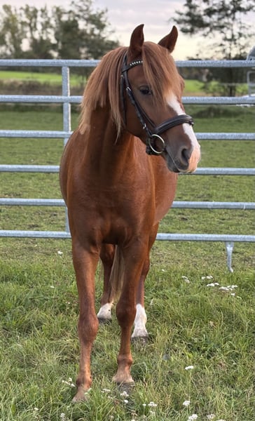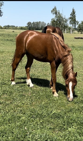 Sehr lieber und menschenbezogener 3 jähriger Wallach von Herzbube D WE aus einer Lestard von Leicester Mutter. Der junge Mann steht korrekt auf den Beinen und ist bei entsprechender Förderung vielseitig einsetzbar. Sein Vater bringt das Dressurblut über Herzkönig NRW und Casino Royale K WE mit. Seine Mutter ist eher der Springflummi und gibt eine schöne Vorderhandtechnik mit. Sein 5 jähriger Bruder von Quarterback’s Junior wurde 3 jährig ins Ausland verkauft und geht dort als ein solides, kopfklares Kinder- und Springpony. Genau das wünschen wir uns für diesen lieben Jungen ebenfalls:) Unser Heimi steht im kleineren Rahmen ca. 1,42 cm und wird auch definitiv im Ponymaaß bleiben;) Momentan steht er noch auf Koppel und darf noch etwas Ponykind sein. Als Fohlen wurde er mit 24 Punkten prämiert. Seit Ende September ist er kastriert. Das letzte Bild zeigt seinen 5 jährigen Halbbruder.