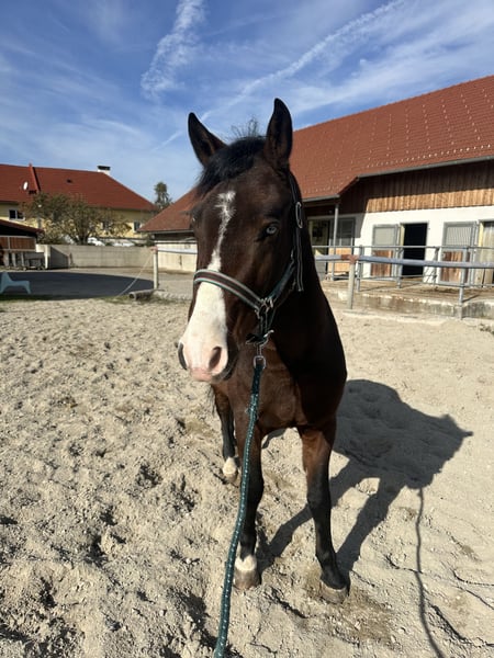 Verkaufe deutsches Reitpony – ideal für Freizeit und Hobby! Ich verkaufe meinen Ponywallach Nacho. Er ist beim Reiten sehr brav und zeigt sich äußerst zuverlässig im Gelände – sowohl alleine als auch in der Gruppe. Nacho springt gerne und arbeitet auch in der Dressur sehr brav mit. Dank seiner Größe deckt er sehr gut ab, sodass auch etwas größere Reiterinnen und Reiter bequem auf ihm sitzen können (die Reiterin auf dem Foto ist ca. 1,65 m groß). Im Umgang ist Nacho manchmal etwas frech, aber immer motiviert, aufmerksam und begeistert bei der Arbeit. Er liebt es, im Mittelpunkt zu stehen und freut sich über viel Zuwendung. Er ist kein reines Anfänger- oder Kinderpony, sondern eher ein Pony, das eine sichere, führende Hand braucht – dann ist er ein absoluter Schatz! 💛
