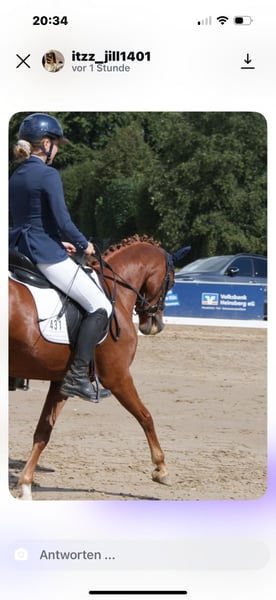 🌟 Ponywallach Damiro – talentierter, junger Allrounder sucht passendes Zuhause 🌟 Welsh x Deutsches Reitpony | 5 Jahre | ca. 1,41 m | Wallach Schweren Herzens suche ich für meinen Ponywallach Damiro ein neues Zuhause. Für meine fünfjährige Tochter ist er aktuell noch zu unerfahren, und leider fehlt uns hier der passende Reiter, um ihn gezielt weiter zu fördern. ⸻ 🐴 Steckbrief • Name: Damiro • Rasse: Welsh Pony x Deutsches Reitpony • Vater: Despacito von Schurf (doppelveranlagt) • Alter: 5 Jahre • Stockmaß: ca. 1,41 m • Geschlecht: Wallach ⸻ 🎓 Ausbildung & Einsatz Damiro befindet sich am Beginn seiner Ausbildung und zeigt dabei viel Talent, Lernfreude und Motivation. Da wir aktuell keinen festen Reiter für ihn haben, wird er bei uns im Reitverein im Unterricht mitgeritten. Dort wird er auch von Kindern ab etwa acht Jahren geritten, die bereits etwas Erfahrung mitbringen. Er ist kein reines Anfängerpony, da er im Galopp noch etwas eifrig ist und klare Hilfen braucht, zeigt sich aber immer bemüht und lernwillig. • Platziert in WBO-Springwettbewerben und E-Springen • Auch in WBO- und A-Dressuren erfolgreich vorgestellt ⸻ 💖 Charakter Damiro ist ein aufmerksames, sensibles und charmantes Pony, das gefallen möchte. Er braucht einen Reiter, der ihn ruhig, konsequent und mit Gefühl weiter fördert. Mit etwas Fleiß, Geduld und kontinuierlicher Arbeit wird Damiro ganz sicher ein tolles Pony für den Turniersport – motiviert, talentiert und mit viel Herz. Wir wünschen uns für ihn ein ambitioniertes Mutter-/Vater-Kind-Gespann, das Freude daran hat, gemeinsam mit ihm zu wachsen und ihn im Sport oder Freizeitbereich weiter auszubilden.