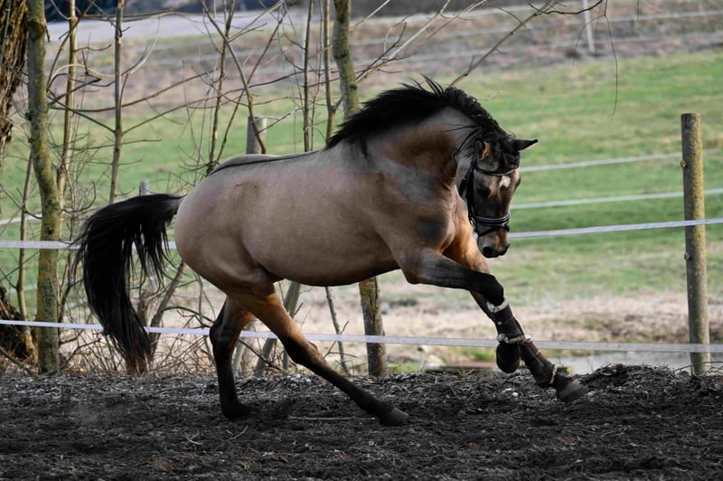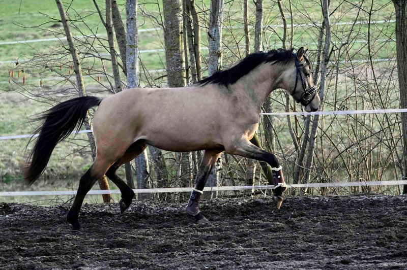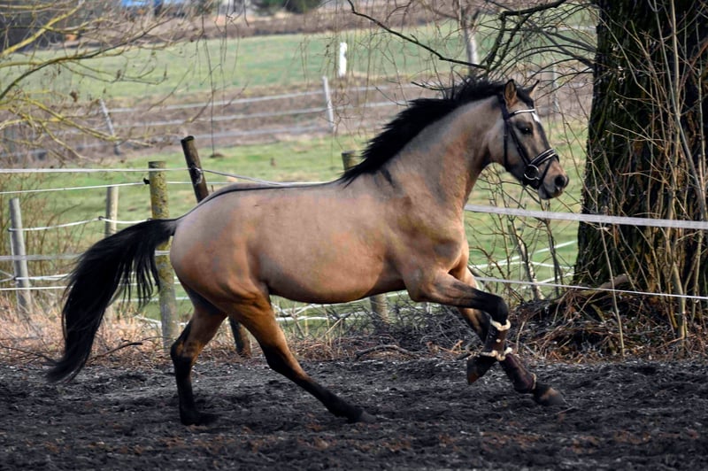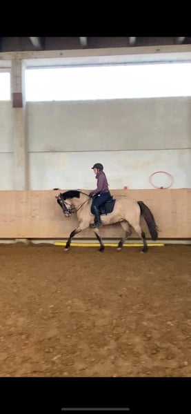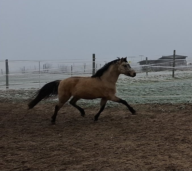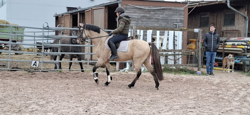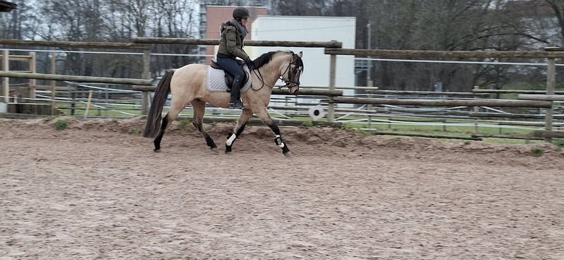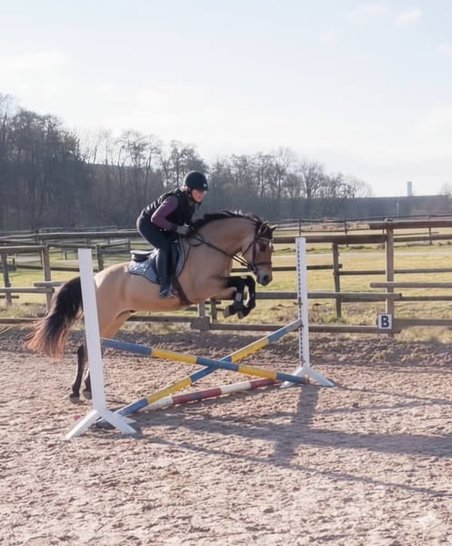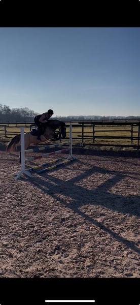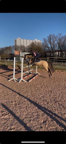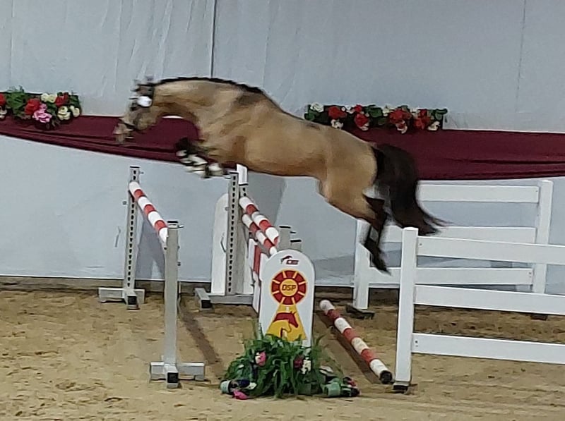 Der kleine Prinz vom Filstal ist ein Pony aus 2021 mit derzeit einem Stockmaß von 1.44m. Er ist nicht nur optisch ein echter Herzensbrecher er lässt auch unter dem Sattel keine Wünsche offen. Seine Mutter Frl. Felicitas war in den Jahren in denen sie im Sport ging das erfolgreichste Baden Württemberger Pony in der Vielseitigkeit. Sie hat mehrmals die Prüfungen in der Vielseitigkeit A * und ** Sterne gegen Großpferde gewonnen und war auch in L-Springen siegreich gegen Großpferde. Sie hat die richtigen Einstellung am Sprung und hat das an ihren Sohn weiter vererbt. Frl. Felicitas ist als Sportregisterstute aufgenommen ins Zuchtbuch in Baden Württemberg. Prinz wurde gekört und süddeutsch anerkannt. Mittlerweile geht er stressfreier als Wallach durch die Welt. Er wurde solide angeritten ist brav und willig und sehr rittig, wurde aber erst spät gesprungen (Dezember 2025).Die Bilder sind aus den ersten 3 Springeinheiten seiner Ausbildung unter dem Sattel. Sofort war zu bemerken, dass er hierfür genügend Herz hat und die richtige Einstellung hat. In der Dressur ist er willig, beginnt Last aufzunehmen und sich zu präsentieren. Alle drei Grundgangarten, wie bei einem gekörten Hengst üblich, sind überdurchschnittlich. Das Freispringen ist aus seiner Körung und der süddeutschen Anerkennung. Im Film im dem er steht wird sehr schön beschrieben wie er einzuschätzen ist. (Ton anmachen) Sein Vater ist Kastanienhofs Donnertrommler. Kastanienhof Donnertrommler ist ein dressursportlicher Musterschüler und Jahr für Jahr ein Erfolgsgarant. Er war siegreich in Reitpferde- und Dressurpferdeprf. Kl. A und mehrfach platziert in Dressurpferdeprf. Kl. L. 2017 und 2018 platzierte er sich im Bundeschampionatsfinale in Warendorf. Ende 2017 absolvierte er seinen HLP-Kurztest in Münster-Handorf als Sieger wobei er in allen Grungangarten gleichmäßig hoch benotet wurde und in der Rittigkeit mit 9,08 erwartungsgemäß punktete. Auf der FN-Bundeshengstschau 2019 in Berlin war Donnertrommler Endringhengst der jüngeren Hengste und wurde mit der FN-Bundesprämie ausgezeichnet. Mittlerweile ist Donnertrommler im FEI-Sport erfolgreich und in 2021 auch bereits international in Kronberg platziert. Diese Leistung ist kein Zufall: in direkter Folge reihen sich in seinem Pedigree die internationalen FEI-Sieger Dornik B, Kennedy WE und FS Don’t Worry aneinander. Alle drei feierten ebenfalls Erfolge in Dressur Klasse S und waren bis ins hohe Alter sportlich aktiv und erfolgreich. St.Pr./El.St. Diva Delight ist Vollschwester des WE-Siegerhengstes Kastanienhof Kentaur WE und Halbschwester des WE-Siegerhengstes Kastanienhof Cockney Cracker WE. Die Ur-Großmutter Nontesse brachte neben Delight die beiden gekörten Hengste Danny’s Dream (S-Dr.) und Delgado (M-Dr., 7. Pl. EM 2001) sowie zahlreiche Sportponys in allen Sparten. Der kleine Prinz vom Filstal wartet auf SEIN Kind mit dem er viele viele Jahre erfolgreich im Sport seinen Weg gehen kann. Kein Notverkauf und kein zur Verfügung stellen. Der Preis ist im Moment noch verhandelbar. Wenn er weiter in Beritt geht und dann auf Turnier vorgestellt wird, kann er nicht auf dem Stand bleiben. Standort Baden Württemberg.