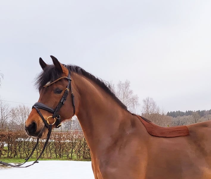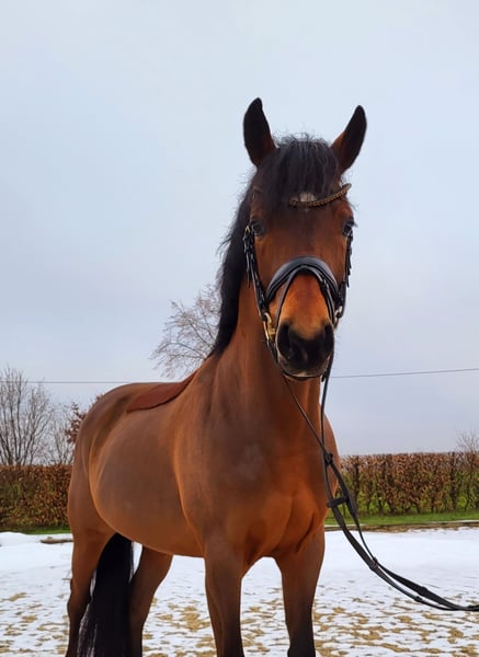 Traumpony zum Verlieben! Nogger HW ist ein brauner Wallach von Neverland, Dance Star AT, Don Joshi AT und ist 146 cm groß. Mit seiner charmanten Art wickelt er jeden um den Finger. Sehr schicker Hengsttyp, verschmust und absolut lieb im Umgang. Bereits 2023 konnte Nogger HW seine überdurchschnittliche Qualität im Rahmen der Körung des Ponyverbandes Hannover in Verden unter Beweis stellen und ein positives Körurteil erhalten. Er ist mittlerweile kastriert und hatte 3-jährig nach der Körung einige Monate frei zum wachsen. Mit seiner unkomplizierten und rittigen Art hat Nogger HW schon ein wenig Turnieratmosphäre kennengelernt. 3-jähirg wurde er 4. auf dem Landeschampionat und konnte sich letzte Saison bereits in Dressurpferde A gegen Großpferde hoch platzieren. Er ist schmiede- und verladefrom. Nogger HW ist bei uns geboren, aufgewachsen und ausgebildet. Also direkt vom Züchter in allerbeste Hände und nur mit tollen Haltungsbedingungen zu verkaufen.