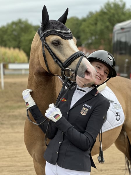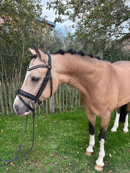 Zum Verkauf steht der 5-jährige Wallach Mister Malfoy mit einem Stockmaß von 1,47 m. Er überzeugt durch seinen tollen Charakter, ist sehr brav, lieb im Umgang und auch mit Kindern absolut zuverlässig. Mister Malfoy zeigt sich immer motiviert und lernwillig, dabei unkompliziert in jeder Situation. Sein aktueller Ausbildungsstand ist Dressurpferde L, zudem ist er mehrfach in Dressurpferde A mit Noten bis zu 7,7 platziert. Auch auf dem Turnier zeigt er sich stets nervenstark und gelassen. Er verfügt über sehr gute Grundgangarten und arbeitet fleißig mit. Cavalettiarbeit, Ausritte und sogar das Reiten ohne Sattel sind für ihn selbstverständlich. Im täglichen Umgang ist Mister Malfoy ein echtes Verlasspony – ob beim Putzen, Satteln oder Führen, er bleibt stets ruhig und freundlich. Er kennt Wiese und Paddock, ist verträglich mit anderen Pferden und hat keine Krankheiten. Mister Malfoy ist ein komplett unkompliziertes Pony, das sowohl im Dressurviereck als auch im Gelände Freude bereitet. Probereiten ist mit Absprache selbstverständlich möglich! Standort: 47259, Duisburg