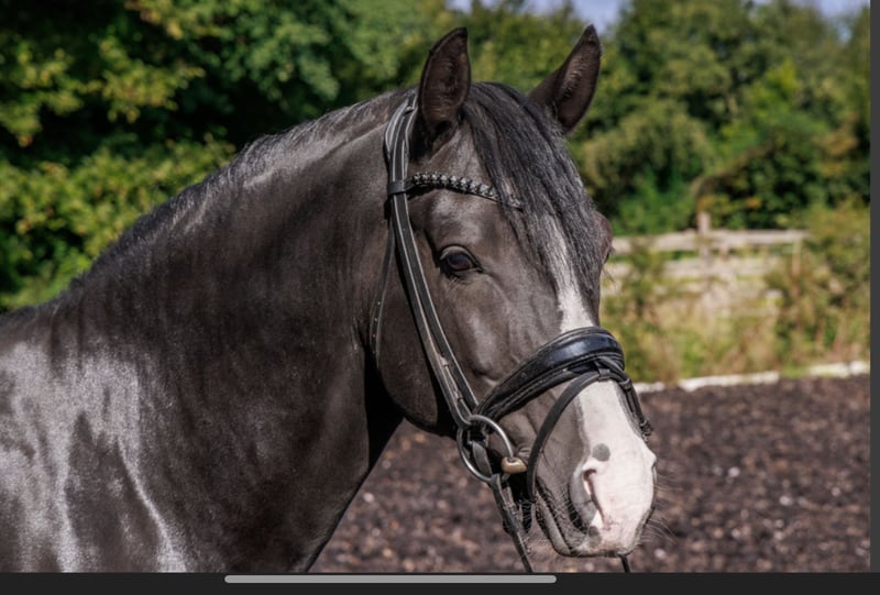 MonAmi Man in Black ist einer der wenigen Söhne des großartigen Petit Magic Colour. Er ist ein typstarkes Reitpony, der immer sofort auffällt, mit einem überragenden Bewegungsablauf und Interieur sowie absolut genialer Rittigkeit. Leicht in der Hand, immer arbeitswillig und reell ausgebildet lernt er seine Lektionen extrem schnell. Ohne Probleme von Kindern handelbar, belegte er bereits auf seinem ersten Turnier in 2023 in einer Reitpferdeprüfung noch als Hengst den zweiten Platz hinter unserem ebenso herausstechenden älteren Deutschen Sportpferdehengst. Auf seinen beiden anderen Turnierstarts in 2023 wurde er jeweils auf dem vierten Platz hinter älteren Großpferden plaziert .Er wurde für das Bundeschampionat 2023 nominiert, konnte dort jedoch aufgrund einer längerfristigen Krankheit der Bereiterin nicht vorgestellt werden. In 2024 wurde er aus demselben Grund nicht gezeigt. In 2025 wurde er bei seinen wenigen Turnierstarts in Dressurpferdeprüfungen der Klasse A sofort hoch plaziert. Er ist Dressurpferde L fertig und ein Kandidat für das Bundeschampionat 2026. Eine gute röntgenologische AKU aus 2023 iiegt vor. Er ist zudem ein Sohn der RM Valentina, die bereits die hoch erfolgreiche Staatsprämienstute Dabia Dior und einen gekörten Sohn brachte. Dabia Dior ist mehrfache Vize-Bundeschampioness und FEI erfolgreich. Im Umgang ein Goldschatz, kuschelt er sehr gern, ist immer sehr artig beim Tierarzt und geht ohne Probleme auf Hänger oder Truck. Video gerne auf Nachfrage