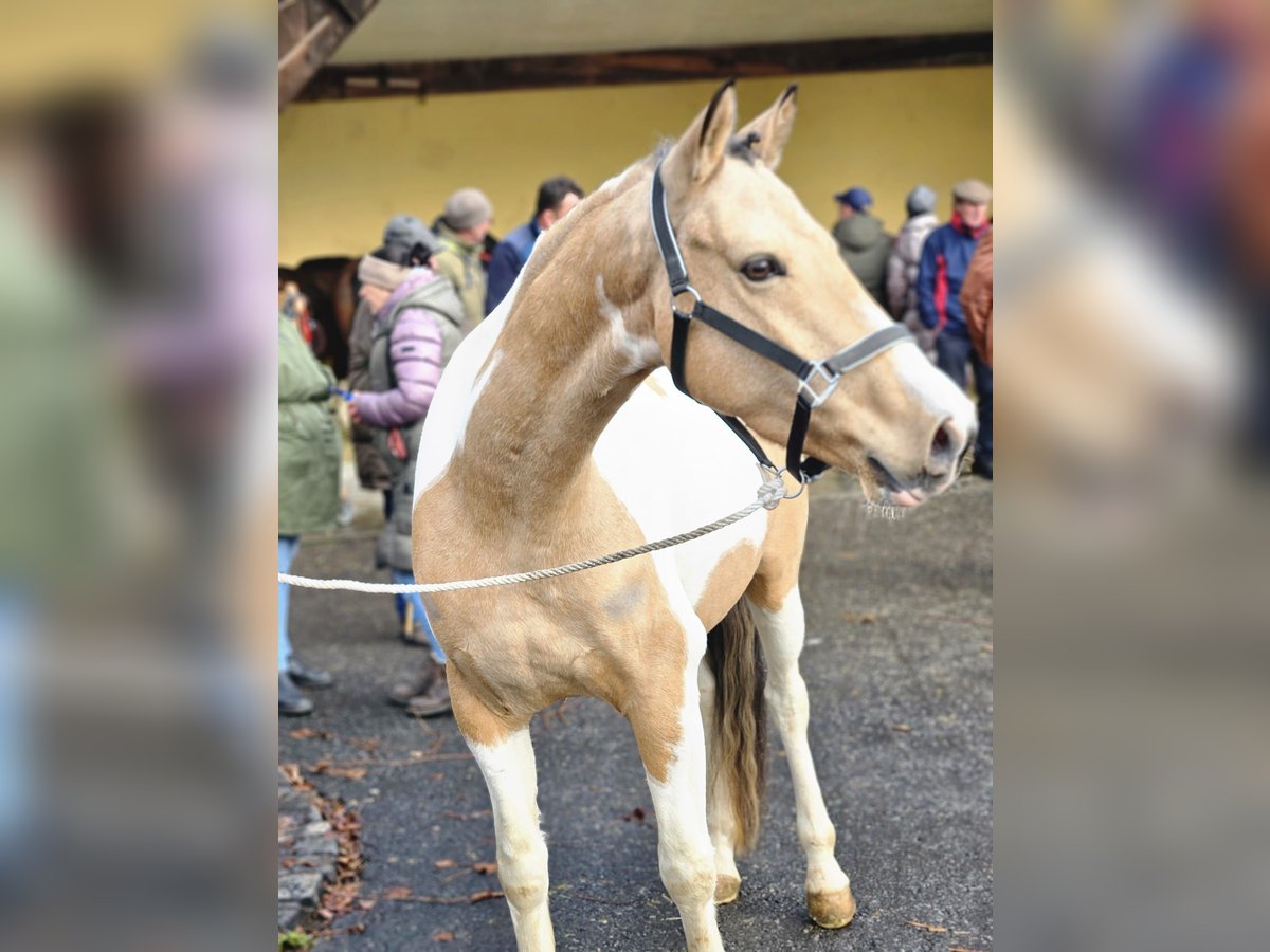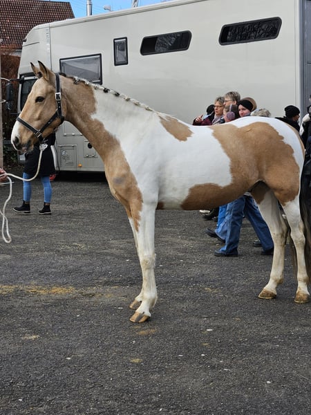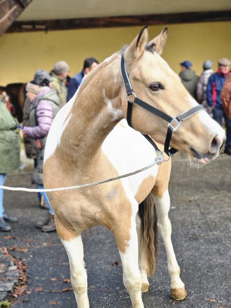 German Riding Pony gelding, born 2021, pinto, 14.8 hh For sale is a German Riding Pony gelding, born in 2021. He is well-started under saddle. We are looking for a supportive home for him, as he is not suitable for our riding school due to his age and training level. He is very well-behaved on the ground and familiar with groundwork. Under saddle, he is sensitive and attentive. He has already participated in small jumping lessons and has shown talent. Possibly open to a swap. Easy to handle.