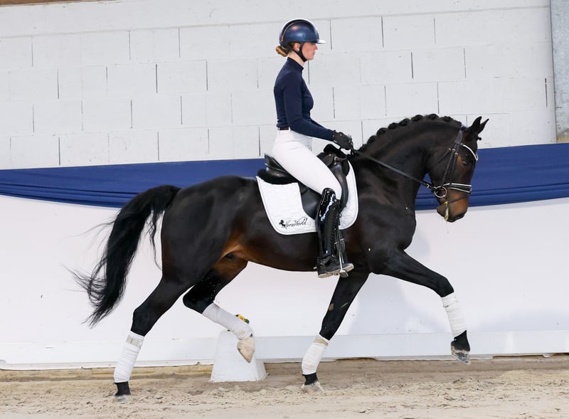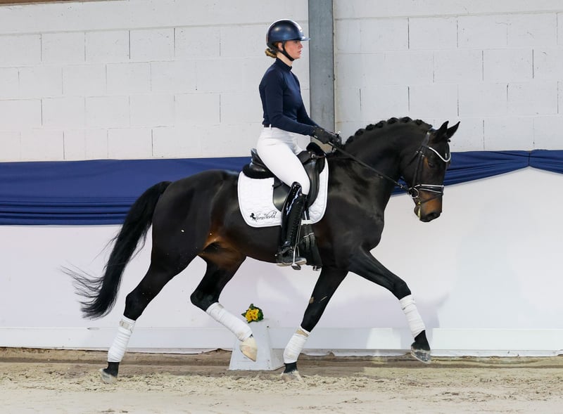 In onze collectie bevinden zich streng geselecteerde rijpony's voor alle eisen: opleidings-, fok- en kinderpony's. Hier vindt u de volledige collectie: https://ponyforum.auction Prestaties: 2 keer gestart in RPF, 1 keer winnaar, 1 keer tweede Een indrukwekkende verschijning betreedt de piste met de vijfjarige ruin My Next Universe. Met een stokmaat van 1,53 m is „Mogli“ zeker het rijponymaat ontstegen, hij behoort dus tot de begeerde XL-pony’s en wordt ook met uitstekende referenties aanbevolen voor verdere dressuuropleiding onder een volwassen ruiter. Mogli is absoluut werkwillig en beschikt over een gezonde, goed regelbare en stuurbare sportgeest. Je kunt bij hem de juiste knoppen voor de „werkmodus“ indrukken en net zo gemakkelijk ontspannen met hem tijd doorbrengen en tijdens het rijden tot rust komen. Zijn hoge basiskwaliteit werd hem al bevestigd door zijn positieve lichaamsbouwbeoordeling, en hij heeft bij tot nu toe twee starts in rijpaardencompetities één keer gewonnen en één keer tweede geworden! Kwaliteit die niet zomaar toevallig is. Zijn vader EN moeder zijn beide dressuurpony's met successen in klasse S – zeker vrij uniek in de Duitse rijponyzucht! Een geweldig dressuur-nachwuchspony dat zich absoluut aanbeveelt voor verdere opleiding in de hogere klassen.