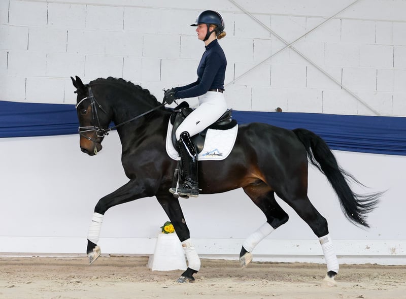 Our collection features carefully selected riding ponies suitable for all disciplines: training, breeding, and children’s ponies. You can view the entire collection here: https://ponyforum.auction Achievements: 2 starts in RPF, 1 win, 1 second place An impressive presence enters the arena with the five-year-old gelding My Next Universe. Standing at 1.53 meters, "Mogli" has outgrown the traditional pony size and now qualifies as a desirable XL pony. He is also well-suited for further dressage training under an adult rider, backed by excellent references. Mogli is highly willing to work and possesses a healthy, well-regulated, and controllable sporting spirit. You can easily activate his "work mode" or simply enjoy relaxed riding and downtime with him. His high basic quality was already confirmed with a positive conformation assessment. He has competed twice in riding horse classes, winning once and placing second once. This level of quality is no coincidence. Both his sire and dam are dressage successful riding ponies in class S — a truly rare achievement in German riding pony breeding! An outstanding dressage prospect pony, highly recommended for further training in the higher classes.