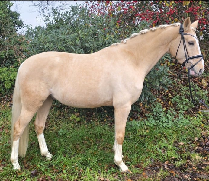On behalf of the breeder, here is a strikingly beautiful and high-quality 4-year-old XL pony gelding by Dating AT out of a Franziskus mare for sale. Equipped with three evenly matched, good basic gaits, this XL pony is growing into a wonderful family pony. He was backed in the middle of the year and has since proven to be honest and easy to handle both on the ground and under saddle. He has already been ridden by a child (RWB level) with draw reins and has been tested for suitability for children. Training level: - Confident in walk, trot, and canter both indoors and on the outdoor arena - Familiar with pole and cavaletti work - Shows talent over small jumps Further information, videos, and pictures are available upon request at 01703806061.