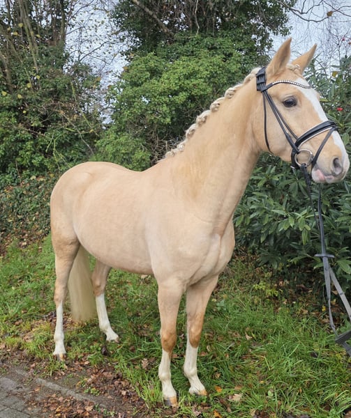Im Auftrag der Züchterin, steht hier ein auffallend schöner und qualitätvoller 4 jähriger - XL- Pony- Wallach von Dating AT aus einer Franziskus Mutter zum Verkauf. Mit drei gleichmässig guten Grundgangarten ausgestattet, wächst hier ein XL Pony für die ganze Familie heran. Er ist Mitte des Jahres angeritten worden und zeigt sich seitdem im Umgang, wie auch unter dem Sattel stets ehrlich und gut händelbar. Er ist bereits vom Kind(RWB- Niveau) mit Ausbindern geritten und auf kindertauglichkeit getestet. Ausbildungsstand: -sicher in Schritt, Trab, Galopp in der Halle und auf dem Außenplatz -kennt Stangen- und Cavaletti-Arbeit -zeigt Talent am kleinen Sprung Weitere Informationen, Videos und Bilder gerne Anfrage unter 01703806061
