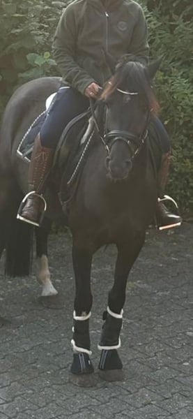 With a heavy heart, I am selling my pony gelding due to lack of time. He is a very honest and friendly pony that often makes children’s hearts beat faster. He enjoys being the center of attention and is a little entertainer. As is typical for a pony gelding, he can be a bit cheeky during puberty, but never mean. He just needs clear instructions, then everything is fine. He is kept in an open stable and shows himself to be very social and well-behaved with all horses, regardless of size, age, or gender. I only started riding him at 4.5 years old, and over the past 1.5 years, he was ridden only occasionally due to pregnancy and a new baby. As a result, he is still completely unspoiled, and you can tell that this has done him good. Now, at 6 years old, he is ready for more. He is very clear-minded and always in good spirits – I rode him until the 7th month of pregnancy because I could always rely on him. Currently, he is exclusively ridden by a 12-year-old girl who came straight from beginner lessons and has continued to learn with him. She now jumps small cross rails and goes on rides outside the arena. He is always reliable in the countryside, bravely leads the way, and is very fearless. He calmly passes through villages, past moving trucks, etc. Almost nothing surprises him. That’s why I can very well imagine him excelling in eventing. He has the qualities for both dressage and show jumping. He unfortunately has relatively thin hooves, so we found that he handles better with front shoes than barefoot. Otherwise, he has never been ill, has no eczema, mud fever, or similar issues. He is regularly vaccinated and dewormed. In 2023, I purchased him with a thorough health check including X-rays, which can also be viewed. He will only be sold to a top-quality home, so I kindly ask to refrain from dealer inquiries. For a home of excellence, price is definitely negotiable.