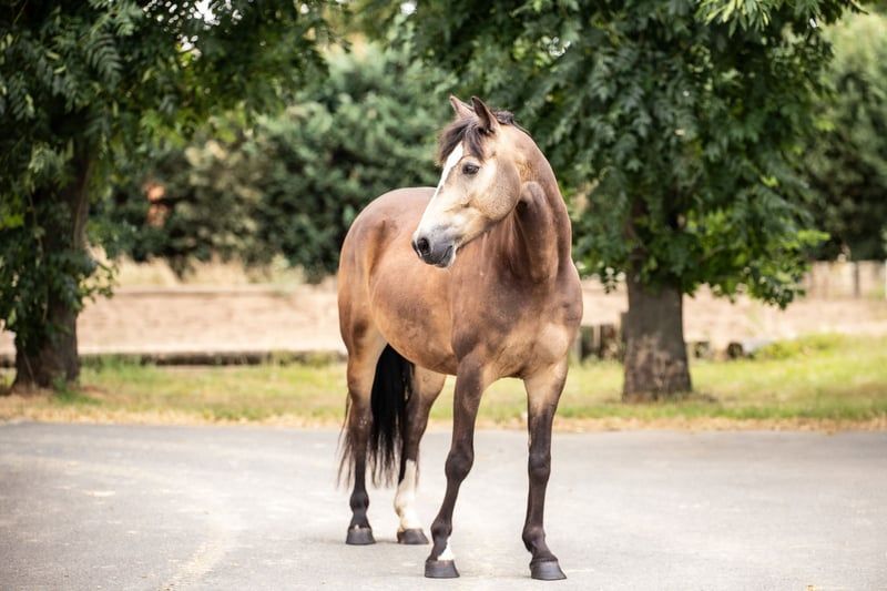 Wir verkaufen unser sechjähriges Deutsches Reitpony 'Hesselteichs Donnerblitz' abstammend von Hesselteichs Don't forget me× Lucky Lao I. Er zeigt sich bei uns unerschrocken und lernwillig und wurde in allen drei Gangarten geritten. Erste kleinere Sprünge unter dem Reiter hat er bereits absolviert. Er beherrscht Seitengänge vom Boden und das Einparken an der Aufstiegshilfe. Außerdem zeigt er viel Freunde an der Stangenarbeit oder beim Gelassenheitstraining. Er ist sehr verträglich mit anderen Pferden und steht aktuell mit einem anderen Wallach zusammen draußen. Aber auch mit Stuten auf der Weide oder Paddock hat er schon gestanden. Er kennt Hunde, Katzen, Kühe und Treckern und ist dabei sehr entspannt. Röntgenbilder aus 2023 sind vorhanden und können bei Interesse eingesehen werden. Bei Interesse freuen wir uns ein Termin zum Kennenlernen zu vereinbaren.