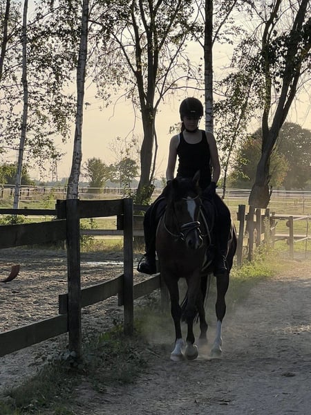 Wir verkaufen unseren 5-jährigen deutschen Reitponywallach mit Potenzial für den Sport. Wir sehen ihn bevorzugt in der Dressur oder Vielseitigkeit. Er ist mit drei sehr guten Grundgangarten ausgestattet, besonders hervorzuheben ist der Schritt. Alibaba ist im Umgang ein tolles Pony, sehr menschenbezogen und verschmust. Unter dem Reiter aber sensibel und sehr fein. Wir wünschen uns für ihn eine erfahrene Person, die ihn in seiner weiteren Ausbildung begleitet. Er ist lernwillig, steht aber mit seinen 5 Jahren noch am Anfang seiner Ausbildung. Wichtig zu wissen: Alibaba ist kein reines Anfänger- oder Kinderpony! Er benötigt eine erfahrene Person, die ihn fordert und fördert. Alibaba befindet sich noch im Wachstum (Stockmaß 1,47 m) und kann daher nur Reiter bis 60 kg tragen. Er benötigt tägliche Auslastung und ist für eine reine Boxenhaltung nicht geeignet. Kein Verkaufan Händler!! Er zieht nur um, wenn wirklich alles passt.