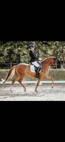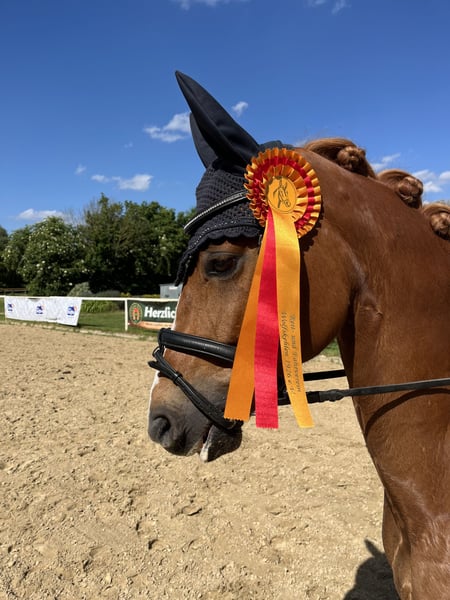 For sale is a 6-year-old dressage pony (148 cm measured) by Totilas (Pony) x Londondarry. He has been trained in dressage for a year; prior to that, he was only ridden out in the field. Current training level: Dressage horses L. In daily work, he impresses with his rideability, very good basic gaits, and his excellent attitude towards daily work. He is developing enormously week by week, and the L-level exercises are becoming increasingly secure. He has won dressage competitions at A level and is currently being presented in the first L dressage tests. Here, he demonstrated strong nerves and fearlessness. Due to his age, he is not suitable for beginners! He is well-ridden by advanced children due to his ease of riding. Digital X-rays from 2022 are available. Further videos can be sent upon request.