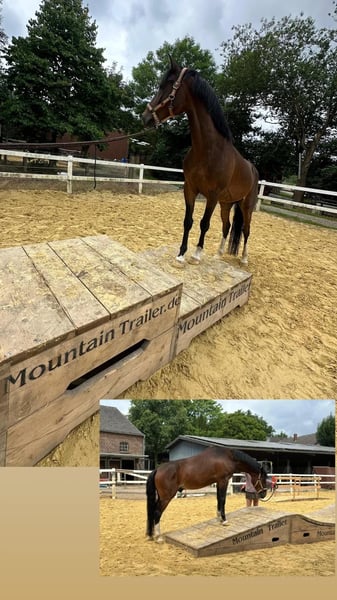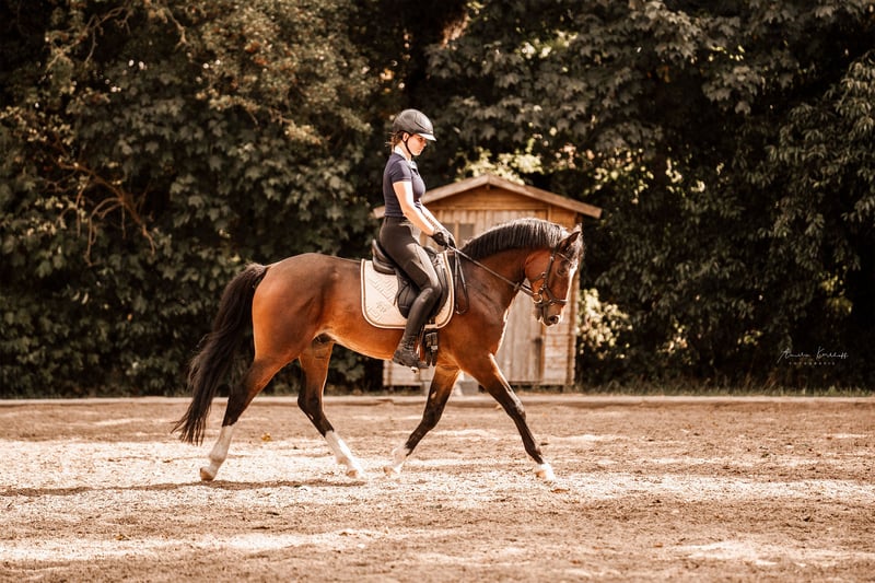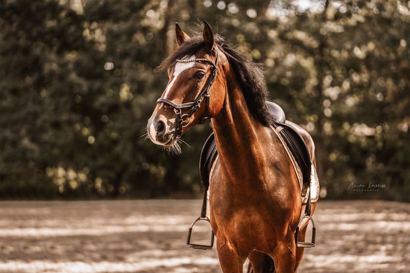 Lucido ist ein vielversprechendes Dressurpony mit feinem Charakter, das einen passenden Menschen sucht, der ihn weiter fördert – sei es in der Dressur, im Gelände oder bei der Bodenarbeit. Ladys Lucido ist seit Juni unterm dem Sattel und zeigt sich dabei stets motiviert, feinfühlig und sehr lernwillig. Er ist sehr menschenbezogen, aufmerksam und im täglichen Umgang absolut lieb. Besonders bei der Bodenarbeit und Freiarbeit blüht er richtig auf. Für jugendliche Reiter ist er bereits ein tolles Pony zum direkt Losreiten. Als Kinderpony ist er noch nicht ganz so weit, zeigt sich jedoch auch unter einer 9-jährigen bereits zuverlässig und artig beim reiten an der Longe. Lucido war kürzlich mit uns im Reiturlaub (5 Tage Cuxhaven, 2 Tage Emsland) und hat sich dort vorbildlich verhalten, weder Wildpferde, Kühe, Hunde noch das Meer konnten ihn aus der Ruhe bringen. Auch Hängerfahren und Außwärtstraining sind unproblematisch für ihn. Wir haben im Urlaub einige Baumstämme und Naturhindernisse mitgenommen, ein Geländelehrgang ist jetzt auch geplant, Stangenarbeit kennt er auch. Im Springen haben wir ihn aber nicht gefordert. Auf Turnieren wurde er bisher nicht vorgestellt da wir hier keine Ambitionen haben, er hat aber als Fohlen die Fohlenprämie bekommen Aktuell steht er bei uns im gemischten Offenstall, kommt damit aber nicht optimal zurecht, er wirkt oft gestresst. Wir denken, dass er sich in einer Box mit regelmäßigem Weidegang oder in einem Offenstall mit reiner Wallachherde wohler fühlen würde. Leider können wir ihm diese Haltungsform hier nicht bieten. • Zähne wurden Anfang September gemacht • Klinischer TÜV (ebenfalls September) ohne Befund • Osteopathisch regelmäßig betreut Standort: 40885 Preis: 9.200 Euro (steigt mit weiterer Ausbildung) Kontakt: 015757175200 Videos: https://www.instagram.com/stories/highlights/18063678793854503/ um das junge Pony zu schützen berechnen wir für ein Probereiten 20 Euro, diese werden beim Kauf selbstverständlich verrechnet.
