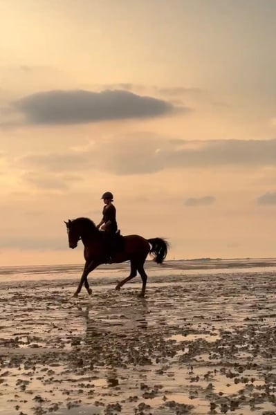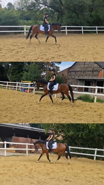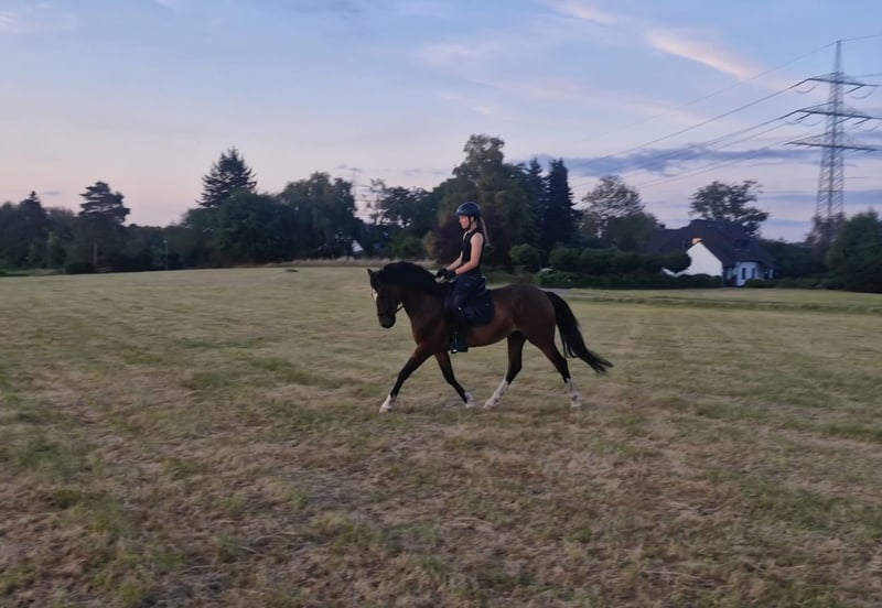 Lucido is a promising dressage pony with a fine character, looking for a suitable person to further develop him – whether in dressage, on trails, or in groundwork. Ladys Lucido has been under saddle since June and always presents himself as motivated, sensitive, and very eager to learn. He is very people-oriented, attentive, and absolutely sweet in daily handling. He particularly thrives during groundwork and free work. For young riders, he is already a great pony to start riding directly. As a children's pony, he is not quite there yet, but he is already reliable and well-behaved when lunged by a 9-year-old. Lucido recently accompanied us on a riding holiday (5 days in Cuxhaven, 2 days in Emsland) and behaved exemplary there; neither wild horses, cows, dogs, nor the sea could disturb his calm. He also has no issues with trailer loading and external training. During the holiday, we took some tree trunks and natural obstacles with us, and a cross-country training course is now also planned; he is familiar with pole work. However, we did not challenge him in jumping. He has not yet been presented at competitions as we have no ambitions in that area, but he received a foal premium as a foal. Currently, he is kept in a mixed open stable but does not cope well with it; he often appears stressed. We believe he would feel more comfortable in a box with regular turnout or in an open stable with a pure gelding herd. Unfortunately, we cannot provide this type of housing here. • His teeth were done in early September. • Clinical vet check (also in September) with no findings. • Regularly cared for osteopathically. Location: 40885 Price: 9,200 Euros (increases with further training) Contact: 015757175200 Videos: https://www.instagram.com/stories/highlights/18063678793854503/ To protect the young pony, we charge 20 Euros for a trial ride, which will be deducted from the purchase price if he is bought.