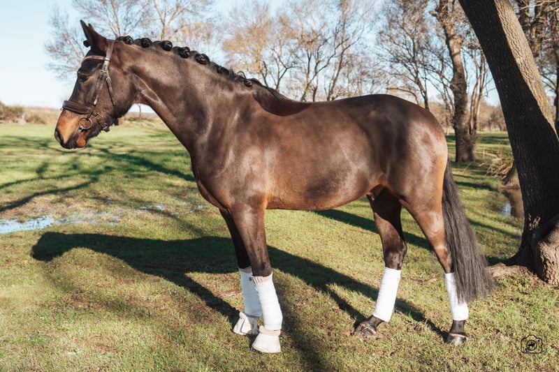 Très belle opportunité pour cavaliers exigeants. Grand Slam est un poney de sport allemand (DRP) moderne, avec un vrai modèle de dressage. Il présente trois très bonnes allures, un galop équilibré et un mental facile, volontaire et agréable au travail. Travail en cours de Perfection: Transition aux trois allures , Changements de pied ferme à ferme , épaule en dedans , cession à la jambe, Pirouette au pas Travail en cours d'acquisition: Appuyé aux trois allures , changements de pieds en l'air ➡️ Poney prêt pour un projet sportif en dressage, idéal pour un amateur ambitieux ou une jeune cavalière. A modern and high-quality German sport pony with a clear focus on dressage. Grand Slam offers three very good gaits, a balanced canter and a kind, willing and easy character. ➡️ An ideal partner for an ambitious amateur or a young rider looking for a serious dressage project. Sehr schönes, modernes deutsches Sportpony mit klarer Ausrichtung auf den Dressursport. Grand Slam überzeugt durch drei sehr gute Grundgangarten, einen ausgeglichenen Galopp und einen angenehmen, leistungsbereiten Charakter. ➡️ Ein ideales Pony für ein ambitioniertes Dressur-Projekt, sowohl für anspruchsvolle Amateure als auch für den sportlichen Nachwuchs.