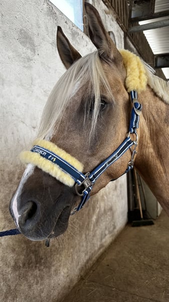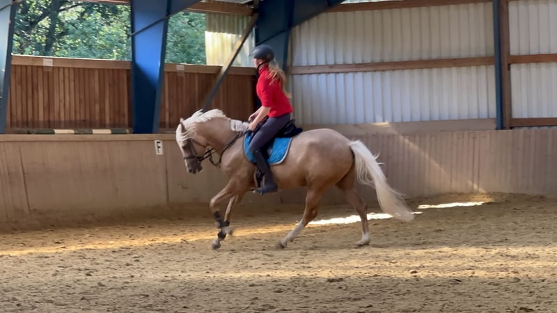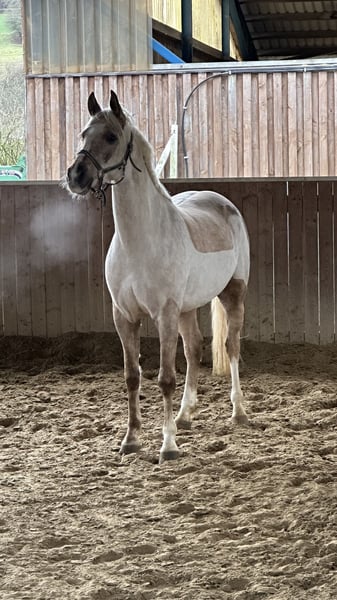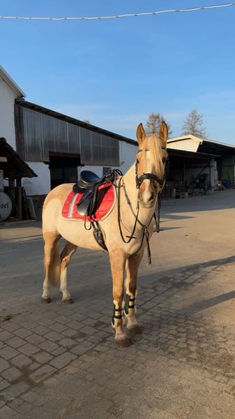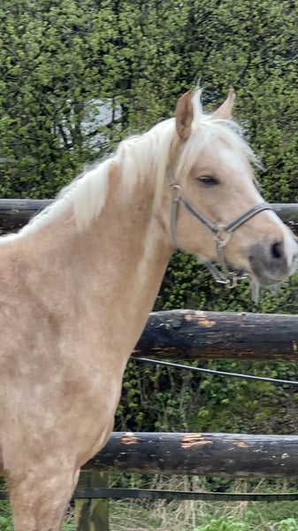 Schweren Herzens steht hier mein sensibler, traumhafter Palominowallach mit sehr guter Veranlagung und feinem Charakter zum Verkauf. Deutsches Reitpony XL Wallach geb.2019 volles Papier ca.152 cm barhuf gesund Zähne gemacht komplett geimpft Tetanus, Influenza, Herpes bildschön brav im Umgang und total verschmust anhänglich und sensibel robust und artgerecht mit gleichaltrigen aufgewachsen kennt 24/7 Weide/Offenstall und Paddockbox mit täglichen Weidegang absolut verträglich mit allem sehr gute GGA, viel Qualität sehr fein macht auch einen tollen Sprung Mai 2024 angeritten, dann nochmal Sommerpause gemacht und wird seit Okt.2024 drei Mal pro Woche geritten muss alters-und ausbildungsentsprechend noch gefördert werden, braucht sicheren Reiter noch kein Kinder-/Anfängerpferd Verkauf nur an Privat in absolut gute fördernde Hände mit artgerechter Haltung. Ich verschicke keine unzähligen Bilder und Videos an Sammler! Wer wirklich Interesse hat kann gerne vorbei komme und sich dieses tolle Pony live ansehen. Probereiten nach Vereinbarung 35 Euro, werden beim Kauf verrechnet.