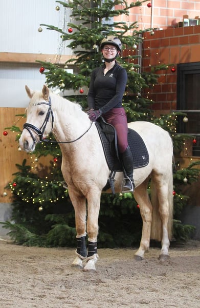 Djulyo wurde aufgrund seiner Größe erst spät angeritten und erst im letzten halben Jahr intensiver gefördert. Gerade hat er seinen ersten Turnierstart gemeistert und direkt eine Schleife mitgebracht. Er kennt sogar schon Mannschaftsreiten und liebt auch Anhänger fahren. Ideales Pony für kleine Erwachsene oder erfahrene Jugendliche mit feiner Hand. Er befindet sich jetzt auf sicherem A- Niveau hat aber wenig Lust zum Reiten. Am liebsten wird er nur 2 bis 3 mal die Woche geritten und am allerliebsten macht er Bodenarbeit oder Kunststücke. Er ist sehr intelligent, lernt schnell und möchte immer was neues machen. Nichts für Langweiler, sondern für jemanden, der eine Herausforderung sucht. Nur einmal Probereiten bringt bei ihm gar nichts, denn Leute die er nicht kennt, mag er erstmal nicht... man muss also öfter kommen und am besten sich auch mit ihm beschäftigen und nicht nur rauf und wieder runter, denn ER sucht sich seinen Reiter aus... Er lief bis 4 jährig in einer Hengstgruppe im Offenstall mit 24/7 Weide, dann in einer Offenstallgruppe mit 4 Stuten und jetzt steht er gerade in einer Box. Er kann problemlos 24/7 auf der Weide laufen und ist auch gerne draußen. Er läuft schon immer barhuf. Seine Familie wohnt auch bei mir, er ist selbst gezogen und seine Oma mit 29 ist noch topfit. Er sucht seinen Herzensmenschen, wo er für immer bleiben kann. Platz vor Preis...bei ihm muss es einfach passen und das ist nicht einfach 3-jährig TÜV gemacht ohne Befund, Zahnarzt und Osteo sind jährlich bei uns