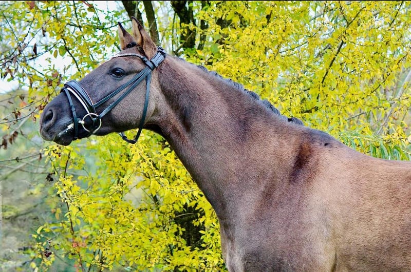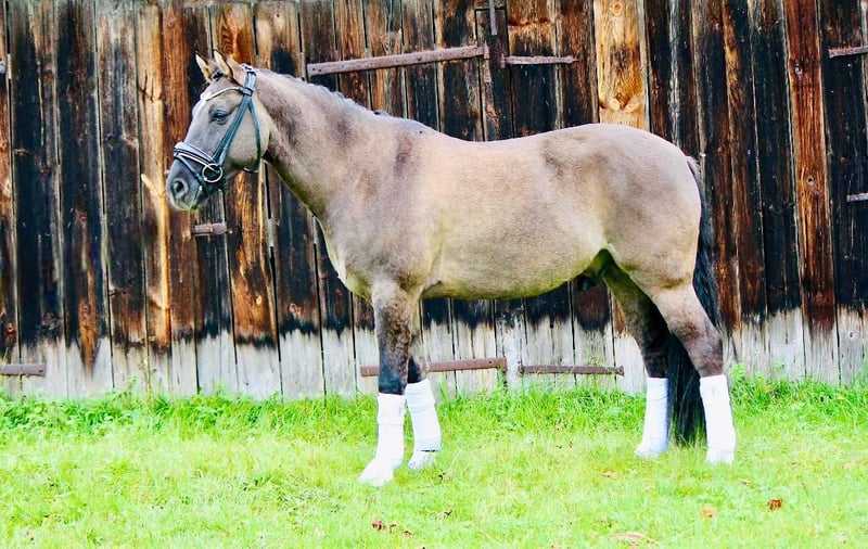 On behalf of a loving family, a wonderful XXL pony for all ages. Six years old, 154 cm tall, and an absolute buddy type. This pony has three very good basic gaits, with the walk being particularly outstanding. It has been ridden at dressage levels A/L and is also capable of jumping an E-course (though jumping has been less emphasized). Successfully passed riding exams in dressage and jumping. Absolutely well-behaved and reliable in all situations — whether handling, at the farrier, with the veterinarian, loading onto the trailer, riding in the indoor arena or on the outdoor riding area.