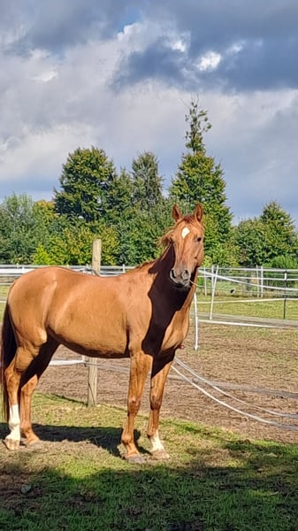 ✨ Lolli – a true heart pony! ✨ Our Lolli is looking for a loving new home due to a lack of time caused by work commitments. He is 7 years old and 1.45m tall. Lolli is a real treasure: absolutely well-behaved, calm, and fearless – whether in the stable, in the arena, or out on the trail. Even small children can easily groom him, lead him, or ride him on the lunge. However, he is not yet suitable for complete beginners due to his elastic basic gaits with natural impulsion and associated momentum. He is already recommended as a fantastic, clear-headed children's pony with quality. He loves to be pampered and groomed for a long time, enjoying every stroke. He is at the A-level in dressage, always works with motivation, and learns new things quickly. Since I have no ambitions for competitions, he has not yet been presented at a show. However, due to his calmness and quality, I can very well imagine him as a sport pony or children's pony in the WBO area. He also loves to jump, always showing controllability and adapting to the situation. However, he has not been further trained in this area yet. Lolli goes out alone or in a group – always unimpressed, reliable, and manageable. Riding him without a saddle, just with a halter from the pasture to the stable, is no problem at all. Additionally, Lolli is good to load, remains relaxed in unfamiliar surroundings, and is uncomplicated in daily handling. Of course, he is also good for the farrier. We wish for him a home with open stable housing or a box with sufficient daily turnout in a harmonious herd environment. Ideally with a mother-child duo or with a young adult who is looking for a reliable, versatile pony. Lolli will only be given to the very best hands with species-appropriate care. Further videos available upon request.