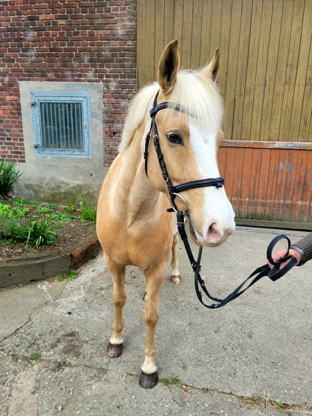 Verkaufe deutschen Reitpony-Wallach, geb. 2019, in wunderschönem Palomino-Farben. Mit einem Stockmaß von 148 cm ist er perfekt für ambitionierte Reiter, die ein vielseitiges und gut gerittenes Pony suchen. Er ist kein reines Anfängerpony und braucht einen erfahrenen und ruhigen Reiter. Grundsätzlich auch schon für gut reitenen Kinder geeignet da er bei uns auch schon vom Kind mitgeritten wird. Er kennt Dressur und Stangenarbeit sowie Gelände. Im Umgang brav und unkompliziert. Kennt Boxenhaltung und Offenstall. Ein kurzes Video kann per WhatsApp geschickt werden. Bei Interesse freuen wir uns auf Ihre Kontaktaufnahme!