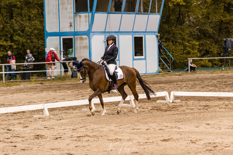Schweren Herzens biete ich meinen grundehrlichen und braven 7-jährigen Reitponywallach zum Verkauf an, wenn alles passt. Im Umgang ist er unkompliziert und lässt sich auch von Anfängern händeln und verladen. In manchen Situationen benötigt er aber auch Sicherheit und Führung, verhält sich aber jedem gegenüber aufgeschlossen und vertrauensvoll. Er wurde von mir angeritten und bis A**-Dressur mit 7er-Noten vorgestellt. Meinen ersten Stilspring-Wettbewerb bin ich mit ihm als 5-jähriger auch gegangen. L-Lektionen wie Kurzkehrt und Außengalopp begonnen. Auf Turnier ist er neugierig, aber immer händelbar. Man merkt ihm den Turnierstress oder auch eine intensivere Trainingsbelastung teilweise an. Er ist mental nicht "der Sportler", der von selber will, möchte aber seinem Menschen dennoch gefallen. Am allerliebsten geht er jedoch ins Gelände, egal ob alleine oder in der Gruppe, ob Schrittrunde oder alle Gangarten. Autobahn inkl. -unterführung, Traktoren, Motorräder, Kühe kein Problem, für Wasserdurchritte braucht er etwas Überzeugung, macht er aber auch. Ich kann ihn mir super als "Mutter-Tochter"-Pferd vorstellen, die sich über qualitätsvolle GGA und sein liebes Wesen freuen und seine Neugier und Aufgeschlossenheit nutzen, ohne ihn sportlich zu überfordern. Da bisher 7 Reiter drauf saßen, die alle wussten was sie tun, kann ich ihn nicht als Anfänger- oder Kinderpony abgeben. Er wird nur in 5*-Zuhause abgegeben, wenn alles passt, kann auch gerne Zubehör (vom Sattel bis zum Anhänger) dazugekauft werden. Gerne per Kontakt oder WhatsApp 0152 56190394