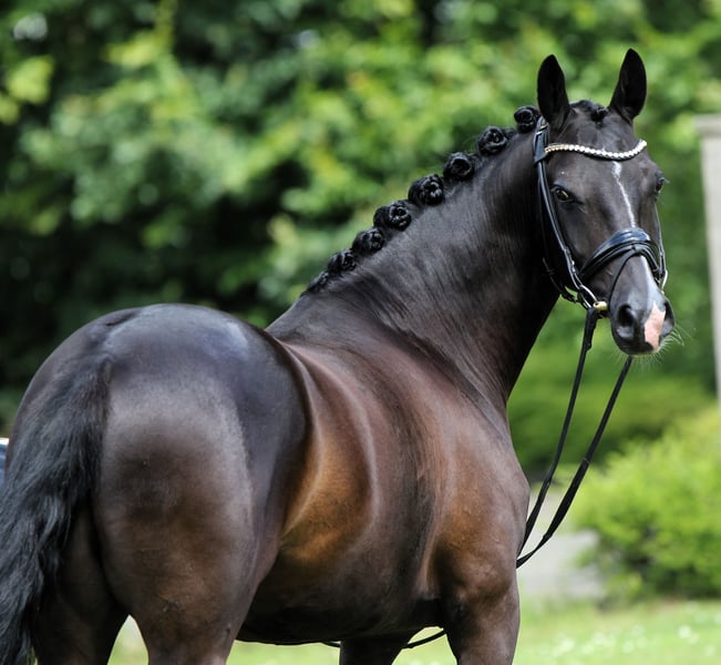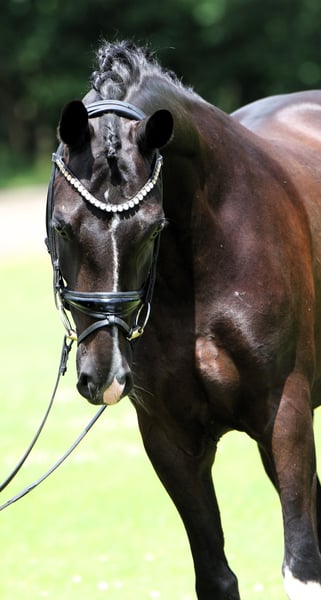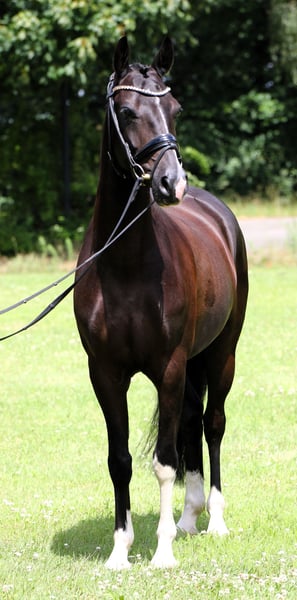 Don Pedro is a jet-black gelding by Dreidimensional, who has been gently brought up and has already shown his talent successfully in competitions. He features a very good walk, a comfortable trot and canter, and excellent rideability. Pedro is always eager and motivated; we are looking for a wonderful family that recognizes his potential and continues to develop him. So far, he has only been presented at shows by young girls and qualified for the Bundeschampionat in 2024. An ideal pony for the young rider championship and for growing into the sport. The pony is listed at the lower end of the specified category. Come see, try him out, and fall in love!