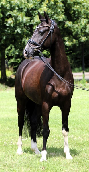 Don Pedro to głęboko czarny wałach o rodowodzie Dreidimensional, delikatnie wytrenowany, który już pokazał się z dobrej strony na zawodach. Charakteryzuje się bardzo dobrym chodem, solidnym stępem, galopem oraz wysoką jeździeckością. Jest zawsze pracowity i zmotywowany, życzylibyśmy mu wspaniałej rodzinie, która dostrzeże jego potencjał i będzie go dalej rozwijać. Do tej pory był prezentowany na zawodach wyłącznie przez młode dziewczęta i w 2024 roku zakwalifikował się nawet do Mistrzostw Krajowych (Bundeschampionat). Idealna koń dla młodego jeźdźca do startów w młodzieżowym pucharze i na spokojne wprowadzenie w sport. Koń znajduje się na końcu wskazanej kategorii. Odwiedź, wypróbuj i zakochaj się!