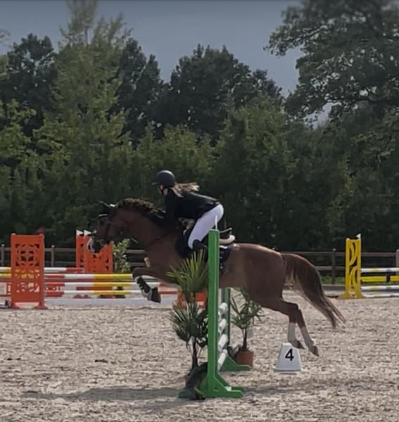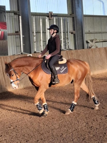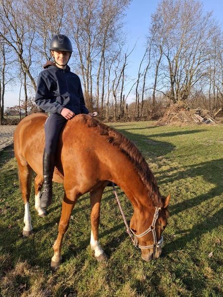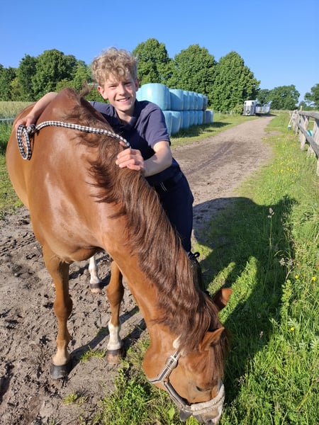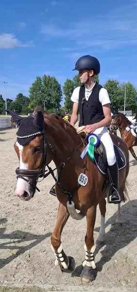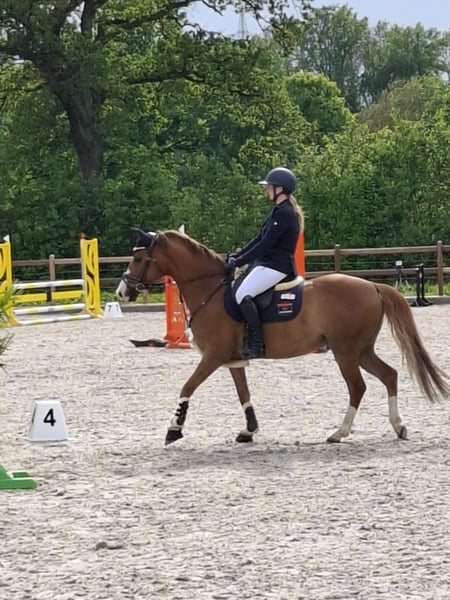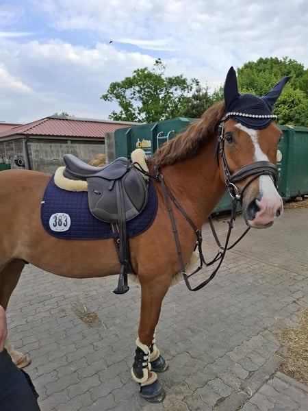 Gelding, 8 years old, 4.9 hh Bünteeichen Ricardo x Scampolo This charismatic pony gelding is looking for a new home with a family environment. He is very people-oriented and loves children. He enjoys jumping and has already gained some competition experience, having been presented up to A* level. He has three excellent gaits and is very pleasant to ride. He can easily be ridden by children as well. Currently, he is ridden by my 13-year-old son, who is now moving on to a larger horse. Additionally, he is receiving professional training. He is very well-behaved at the blacksmith and loading. At the moment, he has front shoes only. He is consistently vaccinated for competition, regularly seen by the dentist and blacksmith, and also undergoes regular osteopathic and chiropractic check-ups. A current, comprehensive health certificate including back check from July 2024 is available. No findings. He is absolutely herd-friendly and tends to be somewhat subordinate in the herd. He has no issues with other horses. Videos can be sent upon request. Contact via WhatsApp is preferred. Test rides are possible. Extensive accessories such as two high-quality saddles and bridles, as well as various blankets, can be purchased additionally.