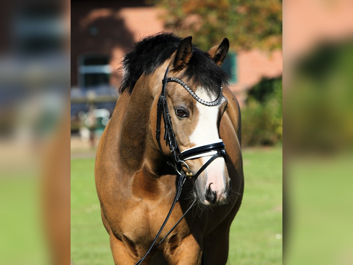Hier wird schweren Herzens im Auftrag der Familie dieser aufällige bunte Falbwallach zum Verkauf angeboten. Diamond Star war als Junghengst gekört und sogar Prämienhengst,was seine Qualität nochmals unterstreicht. Als junges Pferd war er hoch erfolgreich in Reitpferdeprüfungen,er konnte sich sogar als Finalist auf dem Bundeschampionat platzieren. Weiter von einer Jugendlichen vorgestellt,war er siegreich in Dressurpony A und L und qualifizierte sich nochmals für das Bundeschampionat. Er konnte danach einige Siege und Platzierungen bis zur Klasse L sammeln. Diamond Star ist ein wahrer Lehrmeister, der sich sehr schön reiten lässt und eine enorme Grundqualität mitbringt. Nicht Glotzig oder spannig, ehr ein Pony zum " anschieben". Diamond Star wartet auf seine Famile,wo er neu durchstarten darf. Aktuell klinisch und röngtnologisch O.B. untersucht Weitere aussagekräftige Videos verfügbar, gerne anfragen. Der Wallach deckt gut ab! Auch für einen kleinen Erwachsenen denkbar. Unkompliziert auf Paddock,Weide,Führmaschine und Gelände. Preislich am Ende der angegenenen Kategorie.
