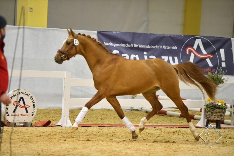Exceptional dressage pony! Currently a 7-year-old chestnut gelding standing at 15 hands, seeking a new home. Schooling up to dressage class Lm with potential for immediate transition. This gelding is suitable for both amateur riders and ambitious competitors. His friendly temperament does not detract from his expressive presence. He is also reliable when hacking out. He is farrier and loading friendly. Currently located in Vienna in Prater, and he can be viewed at any time.