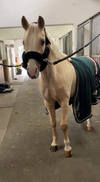 With a heavy heart, we are looking for a new home for our 8-year-old pony gelding. We purchased Touchi directly from the breeder at the age of 4. He is licensed and qualified for the Federal Championship at age 5. Due to his absolutely gentle nature and calm demeanor, we can easily see him as a children's pony. However, he would also make a loyal companion for a small adult. He is completely well-behaved and reliable both in riding and handling. Whether riding alone or in a group, galloping across fields, riding through water, riding bareback, or just with a halter, he is up for any fun! He also enjoys small jumps. He is used to daily turnout with social contact and gets along very well with other horses. The health certificate from 2021 is available and shows no findings. Unfortunately, we lack the time he deserves, which is why we wish for him to find a wonderful new home. For more information, please contact us by phone at 0172/8269899.