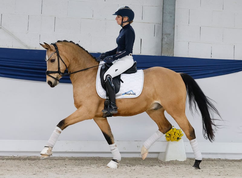 In unserer Kollektion stehen streng selektierte Reitponys f�r alle Anspr�che: Ausbildungs-, Zucht- und Kinderponys Hier gelangen Sie zur Gesamtkollektion: https://ponyforum.auction platziert in Dressurprüfung Klasse L, siegreich in Dressurprüfung Klasse A, platziert in Dressurprüfungen Klasse A, platziert in Dressurpferdeprüfungen Klasse A, siegreich und platziert in Reitpferdeprüfungen, Teilnehmer Bundeschampionat Der neunjährige Falbwallach Mr. Riös kann mit einem Scheckheft voller hochkarätiger Erfolge aufwarten: der ehemals gekörte Hengst war mehrfacher Teilnehmer des Bundeschampionats, hat in Aufbauprüfungen zahlreiche Siege und Platzierungen sammeln können und ist in Dressurprüfungen bis zur Klasse L erfolgreich. Seine Typstärke und Bewegungsgüte kommt nicht von ungefähr: sein Vater FS Mr. Right ist in der Szene ein absoluter Begriff und seine Mutter ist eine Vollschwester des Elitehengstes Kennedy, der selbst bis zur schweren Klasse ausgebildet war. Mit seinen beeindruckenden Bewegungsmöglichkeiten weiß sich Mr. Riös perfekt in Szene zu setzen! Er beherrscht das FEI-Programm sicher und kann direkt erfolgsversprechend in dieser Tour eingesetzt werden. Mit seiner Besitzerin war er im letzten Jahr hauptsächlich in Dressurprüfungen der Klasse A unterwegs, er war der perfekte Partner für seine junge Freundin und hat ihr alle Ängste genommen.