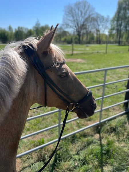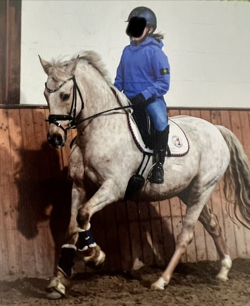 If everything fits, we would choose to place our pony Goldbär in a new 5-star home. Goldbär is a 9-year-old German Riding Pony gelding by FS Coconut Dream out of FS Don’t Worry. He is a reliable partner for children and also brings joy to a slender adult rider. He has an interesting palomino coat and a calm, faultless temperament. He competes in dressage and is capable of performing all movements up to level L. Equally, he can be ridden in lunges by beginners. He is never spooky, fearful, or mean. He always gives his best and stays in good spirits. We have owned him since he was 3 years old; he has always been healthy, with no illnesses or lameness. My daughter has mostly ridden him alone from lead-rein classes up to A-level dressage, and at home, he also performs L-level exercises. He enjoys hacking, is farrier-friendly, loads easily, and is experienced in competitions. He gets along well with other horses but can also be kept alone. He is familiar with the driving harness and enjoys being on pasture. He has also been kept in open stable management. For my daughter, competitive ambition was not always the top priority, so his dressage talent has not yet been fully developed. His maternal half-brother is the European Championship medalist FS Capelli de Niro. Selling is not a necessity; we only want the best possible home for him – because he deserves nothing less. Otherwise, he remains our mascot and will either go into early retirement or be kept in our stable as a companion.