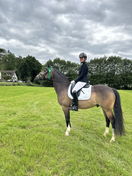 Schweren Herzens verkaufe ich auf diesem Weg meinen Pony Wallach. Danny überzeugt nicht nur durch sein Aussehen, sondern auch durch seine drei sehr guten Grundgangarten und seinen freundlichen Charakter. Er ist sehr Menschenbezogen und unkompliziert im Umgang als auch beim reiten. In der Dressur konnte er sich bereits in Prüfungen bis zur Klasse L erfolgreich platzieren und auch beim Springen hat er Spaß und zeigt Talent. Ins Gelände geht er gelassen sowohl alleine als auch in der Gruppe. Ich wünsche mir für Danny ein fünf Sterne Zuhause. Vorstellen könnte ich mir zum Beispiel gut ein „Mutter-Kind Gespann“. Platz vor Preis