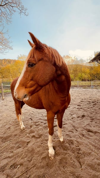 Unser sensibler Deutsches Reitpony Wallach Mucki, sucht ein neues Zuhause. Für unsere 10 jährige Tochter gekauft, stellte sich leider heraus, dass er ein fantastisches Pony, aber nicht in Kinderhänden ist. Daher suchen wir einen Erwachsenen oder eine Jugendliche mit Erfahrung und Team dahinter, die, diesem tollen XXL Pony, einen neuen, geliebten Wirkungskreis geben. Mucki sollte tagsüber Auslauf bekommen, doch abends in seine Box oder Paddockbox zurückkehren können um zur Ruhe zu kommen. Er ist aufgeweckt, freundlich und unfassbar neugierig, braucht aber einen Menschen der ihm Sicherheit gibt, dem er folgen kann - das erreicht marschiert er mit seinem Reiter auch im Gelände gerne vorne weg. Aber auch an anderen Positionen läuft er toll. Alleine ins Gelände gehen, wird bestimmt nach Vertrauensarbeit machbar sein, denn vom Boden aus macht er das gut. Auf dem Platz/in der Halle fühlt er sich wohl, seine Gänge sind weich und gut zu sitzen. Er hat ein gutes Go, allerdings händelbar und nicht kopflos. Bei der Vorbesitzerin ging er auf verschiedene Turniere und platzierte sich in der Dressur A, sowie bei kleineren Geländespringen. Er kann und will noch mehr erreichen, benötigt dafür einen ambitionierten Reiter, der ihm Sicherheit gibt. Er stand bisher meistens mit Wallachen zusammen, wo er sich im unteren Rangbereich einpendelt. Mucki kann besichtigt werden, auch mehrfach und Probe geritten werden, dafür berechnen wir eine Gebühr, die im Falle eines Kaufes verrechnet wird. Beim reiten ist er sehr fein, versteht schnell und setzt um. Auch in der Freiarbeit und an der Longe zeigt er sich unfassbar fein. Schreiben Sie gerne eine Nachricht, wenn sie Interesse oder weitere Fragen haben. Preis - VB!