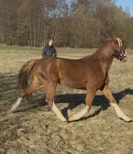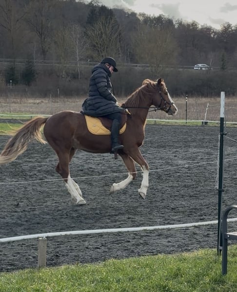 Talentierter Deutscher Reitpony-Wallach mit Turniererfahrung sucht ein neues Zuhause. Terbofens Mr Musik („Mucki“) - Deutsches Reitpony - Wallach - 8 Jahre - ca. 154 cm Stockmaß Ausbildung/Erfolge: * Turniererfahrung vorhanden * Dressur Klasse A platziert * L Lektionen begonnen * Vielseitigkeit Klasse E platziert * kleine Geländesprünge bekannt Mucki verfügt über angenehme, gut zu sitzende Grundgangarten und ein regulierbares Vorwärts. Auf dem Platz und in der Halle zeigt er sich motiviert und arbeitet fein mit. Hilfen versteht er schnell und setzt diese zuverlässig um. Auch Longenarbeit und Freiarbeit sind ihm vertraut. Mucki sucht seine ein bis zwei Bezugspersonen, auf die er sich einstellen kann, im Gelände und im Umgang benötigt er jemandem der ihm Sicherheit gibt. Mucki ist kein Kuschelpony und freut sich über regelmäßiges und abwechslungsreiches Training. Aktuell steht er im Offenstall mit Wallachen. Er kennt aber auch Box bzw. Paddockbox mit täglichem Auslauf. Bei Interesse gerne melden, auch ein Kennenlernen und Probereiten ist möglich. Preis der Ausbildung entsprechend, ein gutes und zuverlässiges Zuhause ist uns aber wichtiger.
