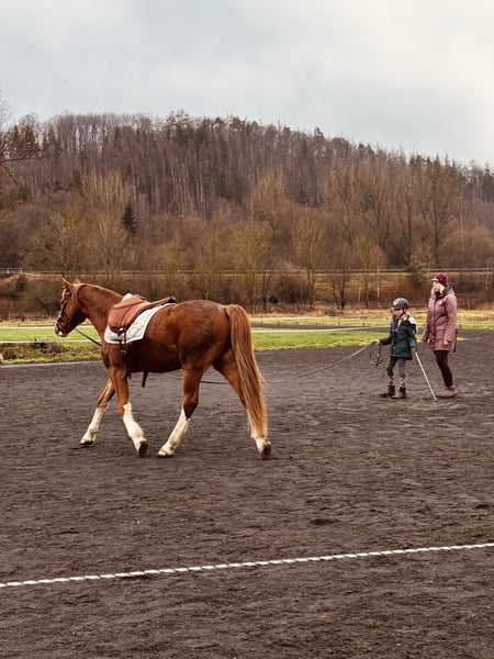 Mucki has pleasant, well-ridden basic gaits and a controllable forwardness. On the arena and in the indoor ring, he is motivated and works with finesse. He understands aids quickly and responds reliably. Longing and free work are also familiar to him.