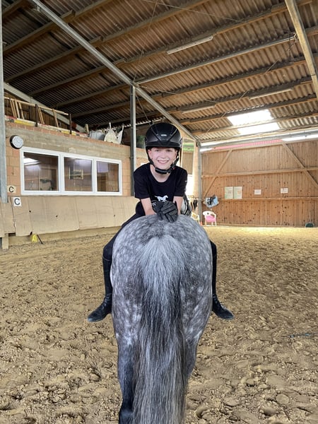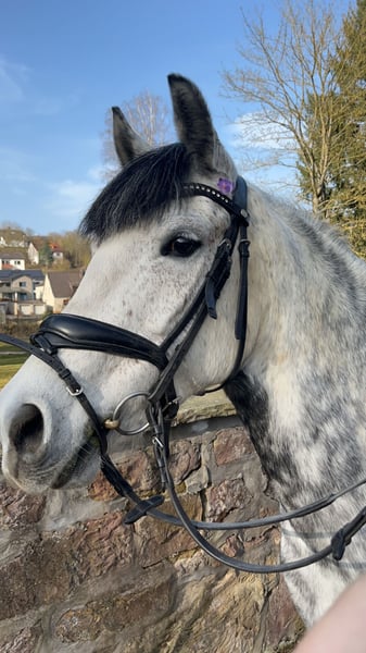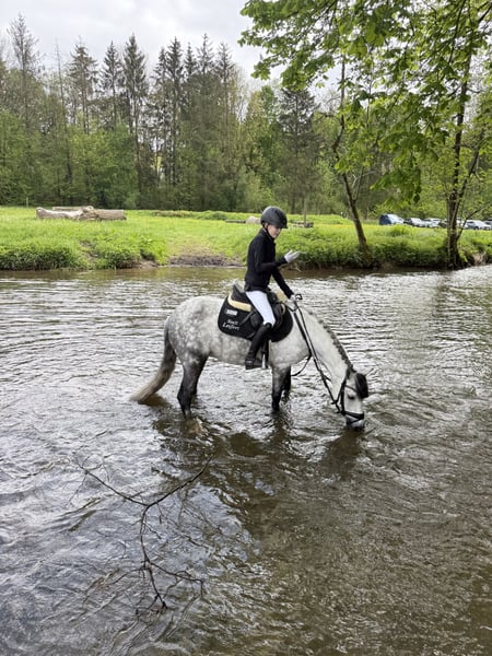 Mit schwerem Herzen suchen wir für unsere 9-jährige Stute Mercy ein neues Zuhause, da meine Tochter ihr entwachsen ist. Mercy ist seit 3,5 Jahren bei uns, wurde von meiner Tochter selbst eingeritten und hatte vor drei Jahren ein Fohlen. Sie war mehrfach erfolgreich im Reiterwettbewerb und E-Springen. 2024 hat meine Tochter auf Mercy ihr Reitabzeichen gemacht. Unter dem Sattel ist sie brav, motiviert und lernwillig. Im Umgang ponytypisch, daher wünscht sie sich eine konsequente Hand sowie erfahrene Eltern im Hintergrund. Bei guter Förderung steckt noch viel Potenzial in dieser Zaubermaus.