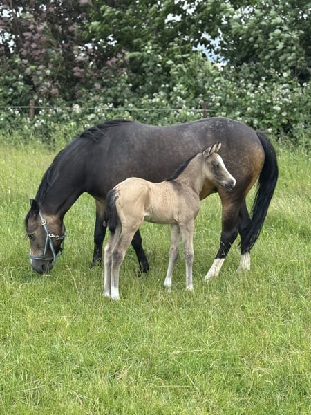 For Sale: German Riding Pony Mare We are offering our charming German Riding Pony mare, born in 2016. This mare is sired by Diamond Touch NRW out of a Nutrix dam. In the past, she has been well-behaved and reliable under saddle in basic tests and riding badges, and has been ridden calmly with children. Her friendly nature and curiosity make her an ideal partner. She has not been ridden for over a year due to her pregnancy. Her first foal by Cosmopolitan NRW is a real eye-catcher and will be weaned in the coming weeks. She is currently pregnant again, due to the top sire Cosmopolitan NRW, with a due date of May 2026. Please feel free to contact me for further information or if you are interested.