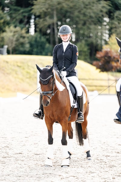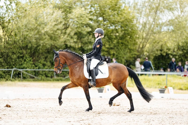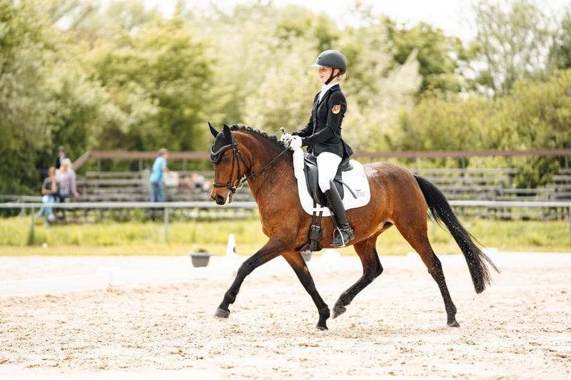 Our charming pony mare Cute (9 years old, 1.47 m, FEI registered) is looking for a new home that will give her as much love as we have. This exceptional mare has qualified twice for the Bundeschampionat and impresses with her high willingness to perform, rideability, and a particularly sweet character. In daily handling, she is uncomplicated, affectionate, and always friendly – a true heart pony that makes children’s hearts beat faster. In the dressage arena, she impresses with expression, a necessary yet comfortable go, and an excellent attitude towards work. My daughter has won numerous A- and L-level dressage tests with her, often earning high 8s. The pony masters all FEI movements confidently and is thus the perfect partner for ambitious young riders looking to make their mark in dressage. Currently, she has won an L* with over 74%, placed 3rd at the regional championship, and has been selected for the regional squad for the third consecutive time. We are only parting with her reluctantly, as we now plan to transition to a larger horse. If interested, a video can be sent upon request. Finding a suitable new home is our top priority.