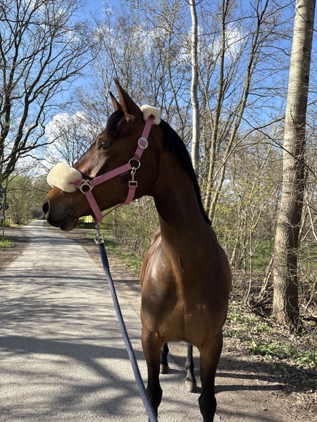 10-jährige Stute, ca. 156 cm, sucht einen neuen Möhrchengeber 🥕 Sie ist absolut brav im Umgang – putzen, Hufe geben etc. sind auch für Kinder problemlos möglich. Sehr menschenbezogen und immer händelnbar auch wenn sie sich mal erschrickt. Sie geht sicher ins Gelände, kennt Stangenarbeit und bleibt auch auf fremden Anlagen ruhig und gelassen. Sie ist bereits als Turnierpferd eingetragen. Sie steht bis jetzt im Sommer 24/7 draußen im Winter Boxenhaltung in der Nacht gewohnt. Sie ist vollständig gegen Herpes & Influenza geimpft, hat aktuell 2 Eisen vorne kann aber auch barhuf laufen. Sie wurde erst etwas später angeritten und braucht beim Reiten einen feinfühligen Reiter, der ihr Sicherheit gibt. Wenn man sich aufeinander eingespielt hat, zeigt sie sich motiviert und möchte immer mitarbeiten. Wir können sie uns gut für einen ambitionierten Freizeitreiter oder ganz entspannte Alltagsarbeit vorstellen. Kein reines Anfänger- oder Kinderpony unter dem Sattel, aber mit viel Potenzial und der richtigen Förderung ein toller Partner. Sie wird nur in beste Hände abgegeben- bitte kein letzte Preis Anfragen ❤️