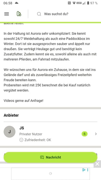 Aurora loves hacking out. Courageous and confident, she rides alone or in groups from the farm. In the arena, she is nicely ridden bitless, even by children. She has also participated in riding lessons for a period of time, which she handled confidently and unafraid. She easily navigates a few Cavaletti and also performs well in groundwork. Her mild left front conformation issue has not affected her so far and is regularly addressed. She is regularly dewormed.