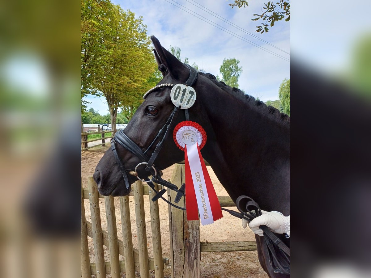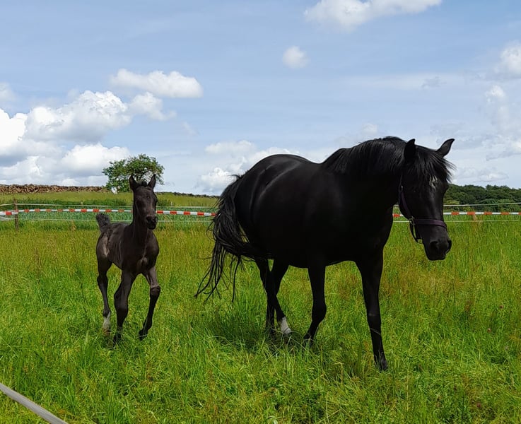 Naomi (*2014) von Popcorn WE x Renoir ist eine sehr hübsche und feine Reitpony-Stute. Sie ist dem Menschen gegenüber immer freundlich und sehr aufgeschlossen. Sie hat noch nie getreten oder gebissen. Im Umgang ist sie ein absoluter Schatz. Naomi ist in unserem Besitz, seitdem sie zweijährig ist. Sie ist in der Dressur auf einem soliden A-Niveau ausgebildet und war mit mir auch bis zur Klasse A auf Turnier unterwegs. Im Training zeigte sie auch Freude bei kleineren Sprüngen. Im Gelände ist sie in der Regel kopfklar - sie kennt es alleine und mit anderen Pferden- , allerdings nicht besonders mutig. Naomi ist sehr sensibel und braucht Sicherheit vom Reiter. Zudem hat sie viel Go. Daher ist sie nicht für Anfänger geeignet. Da ich erst aufgrund der Schule und dann aufgrund meines Studiums weniger Zeit zum Reiten hatte, haben wir unsere Turnierzeit im Jahr 2021 beendet. Stattdessen haben wir Naomi zweimal decken lassen. Sie hat zwei gesunde, großrahmige und hübsche Stutfohlen (*2022 und *2024), welche auch bei uns besichtigt werden können, nach unproblematischer Trächtigkeit zur Welt gebracht. Sie erwies sich als sehr liebevolle Mutter. Nach ihren beiden Fohlen habe ich sie nur noch sporadisch geritten. Für die Zucht ist sie besonders interessant, da sie laut Gentest reinerbig schwarz ist. Naomi hatte nie gesundheitliche Probleme. Allerdings ist sie auf ihrem rechten Auge stark sehbeeinträchtigt (fast blind) wegen einer Netzhautablösung - vermutlich aufgrund eines Traumas im Fohlenalter. Sie hat im Alltag dadurch keine Einschränkungen. Allerdings ist sie in fremden Umgebungen etwas unsicher und gestresst. Naomi ist regelmäßig geimpft und entwurmt. Derzeit läuft sie barhuf, war aber zeitweise auch schon vorne beschlagen. Tagsüber geht sie bei uns in einer kleinen Stutenherde aufˋs Paddock oder im Sommer auf die Koppel. Sie ist zwar eher dominant in der Rangordnung, aber dennoch sehr verträglich mit den anderen Pferden. Nachts steht sie in der Box. Da sie im Moment nicht mehr regelmäßig von mir geritten wird, da es mir aufgrund meines Studiums einfach an Zeit fehlt, ist ein Probereiten nur bedingt möglich! Daher verkaufen wir sie als Zuchtstute! Zudem ist Naomi aufgrund ihres feinen Körperbaus kein Gewichtsträger. Ich werde Naomi nur in die besten Hände abgeben! Kein Schulbetrieb und keine Händler! Platz vor Preis! Für Nachfragen stehe ich gerne zur Verfügung. Bitte Nachricht an 016095851045. Unseriöse Anfragen werden ignoriert!