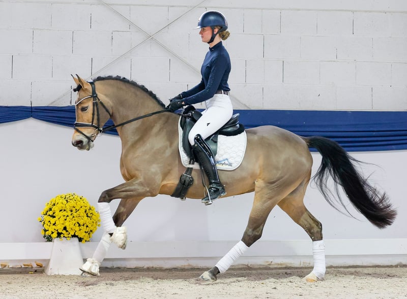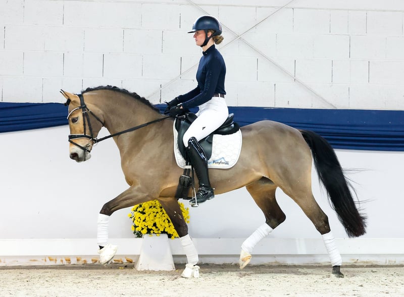 In unserer Kollektion stehen streng selektierte Reitponys f�r alle Anspr�che: Ausbildungs-, Zucht- und Kinderponys Hier gelangen Sie zur Gesamtkollektion: https://ponyforum.auction Erfolge: platziert in Dressurprüfungen Klasse L und A, platziert in Dressurpferdeprüfung Klasse A Mit der volljährigen Blue Ivy steht eine großrahmige und weit ausgebildete Falbstute in unserer Kollektion! Ivy ist ein hervorragendes Dressurlehrpony mit einem großen Erfahrungsschatz und zahlreichen Turnierplatzierungen in Dressurprüfungen bis einschließlich der Klasse L. Sie konnte in der Vergangenheit unter jugendlichen Reitern schon viele Schleifen sammeln! Die ausgesprochen hübsche und leichtrittige Stute punktet mit ihrer Lektionssicherheit und ihrem harmonischen Seitenbild. Egal ob auf dem Turnier oder beim Heimattraining, ob beim Ausritt oder auf dem Reitplatz – Ivy arbeitet mit vorbildlicher Einstellung mit ihrem Menschen zusammen und ist ein absolutes Herzchen! Auch größere Reiter deckt Ivy hervorragend ab, kleinere Reiter trägt sie vorsichtig und mit großer Sorgfalt durch die Halle. Eine ganz liebe Stute, die auch im Umgang und im Handling keinerlei Wünsche offenlässt, sie ist wirklich lieb und aufmerksam ihrem Menschen gegenüber.