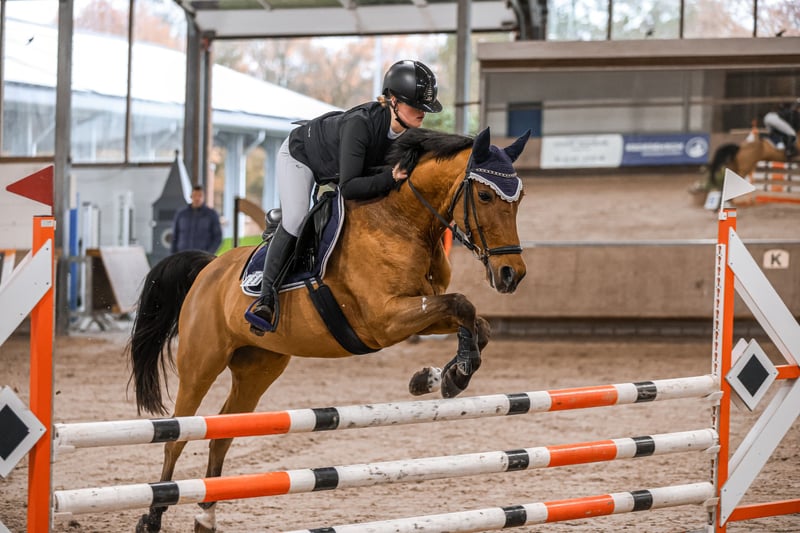 Due to the end of her pony career, we are selling our 12-year-old German Riding Pony mare. An ideal pony for ambitious children and young riders seeking an honest and performance-oriented sport pony. She has numerous placings from WBO to A* level, including several wins. She is placed in A** time and style classes, and has competed in L-level show jumping. The mare is very honest and reliable, forgiving of mistakes, and always eager to cross to the other side. In the show jumping ring, she has plenty of "go" but remains easy to handle. She features three good basic gaits and is very responsive and easy to ride in dressage work. In the cross-country, she is fearless and dependable; she is familiar with beach rides and overnight competitions. In handling, she is very well-behaved and uncomplicated. In the pasture, she is compatible with other horses in a group. A viewing appointment requires a fee of €25, which will be deducted from the purchase price. Interested? Please contact us at 0172 2497005.