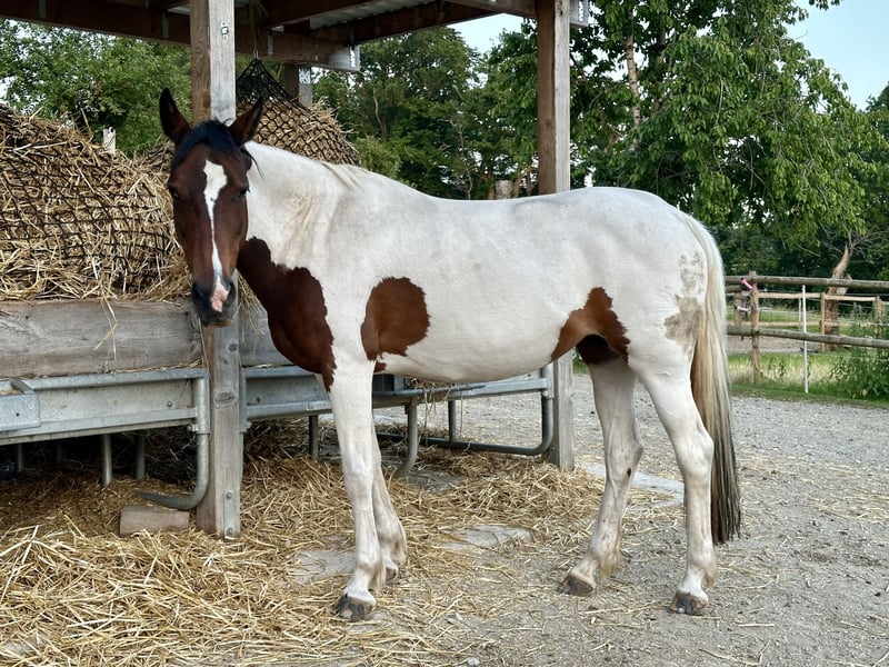 Why am I selling this wonderful horse? 1. I don’t enjoy riding out alone – unfortunately, opportunities for group rides are just too rare for me. 2. Since my pony has a very relaxed temperament and I am also a calm rider with a rather light seat, it doesn’t work well with us in the riding arena (video available – trainer present). Therefore, I am looking for the perfect match for my beloved Endmaß pony mare (born 2012, 14.8 hh). I am sure a rider who is confident to ride alone and exudes good, active energy will have a lot of fun with her. In the field and traffic, she is fearless and not afraid of large machines, trucks, trailers, or dogs. She is a bit “curious” around cows but can pass them without needing to dismount. In a group, she likes to stay at the back but also confidently leads if the other horse stops. She handled an extreme trail course with ease, jumping all obstacles along the way. She is very well-behaved in handling, no bucking, rearing, kicking, or biting. She is an exemplary student during hoof care and enjoys being groomed without fidgeting. She loads into the trailer without issues. She watches over the rider and will stop if the rider becomes unbalanced. She enjoys lunging and equikinetics, and can also wibble-wobble. The mare has been with me since March 2021 and lives in a spacious open stable with limited turnout. She feels very comfortable in the mixed herd, is somewhat lower in rank, and avoids conflicts. It is important to me that she continues to live in a good open stable or similar environment with as much turnout and movement as possible. She is easy to feed. This is not an emergency sale. Inquiries from dealers or interested parties without proof of turnout or similar arrangements are pointless. Of course, I continue to train her with groundwork and she is ridden once a week by my trainer. My pony is fit, healthy, allergy-free, and not an Eczema horse. Further information about her pedigree etc. available upon request. German Riding Pony, L.St. S1 (DR) Premium foal at birth Born in 2012 Height: 14.8 hh Klebe shoes front and back Price: €6,999 Including bridle, leather halter, rope halter, and three blankets (100, 50, 0). The saddle can be purchased for €500. To prevent riding tourism, trial riding is only possible for €35 (deductible from the purchase price).